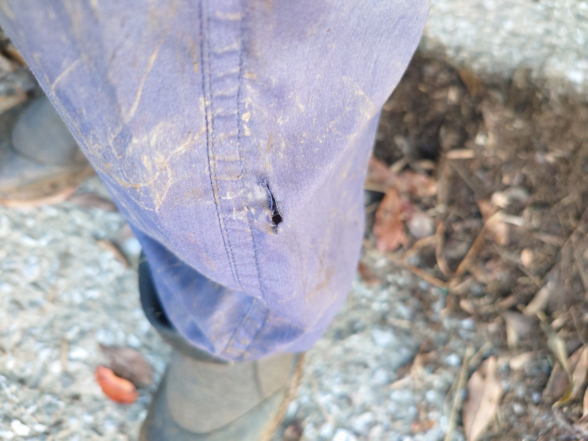 網に引っかかってしまい、ズボンに穴が開いてしまいました。