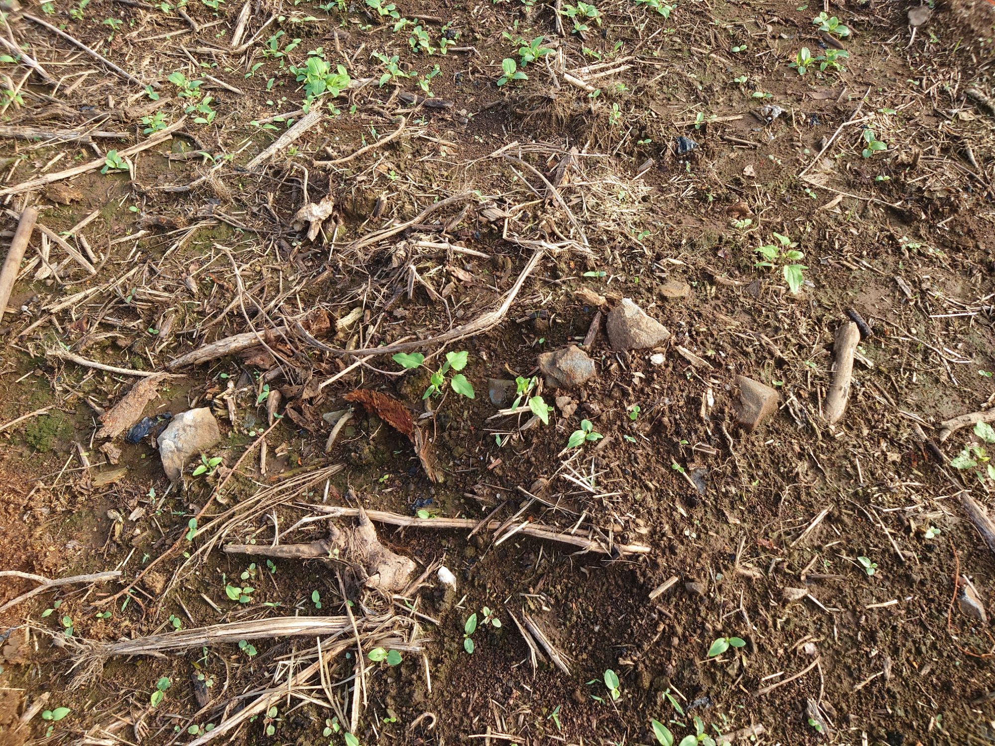 トラクターで耕耘していて、石が引っかかるとドドドンとなるので、そうなった場合に石を探しに行きます。