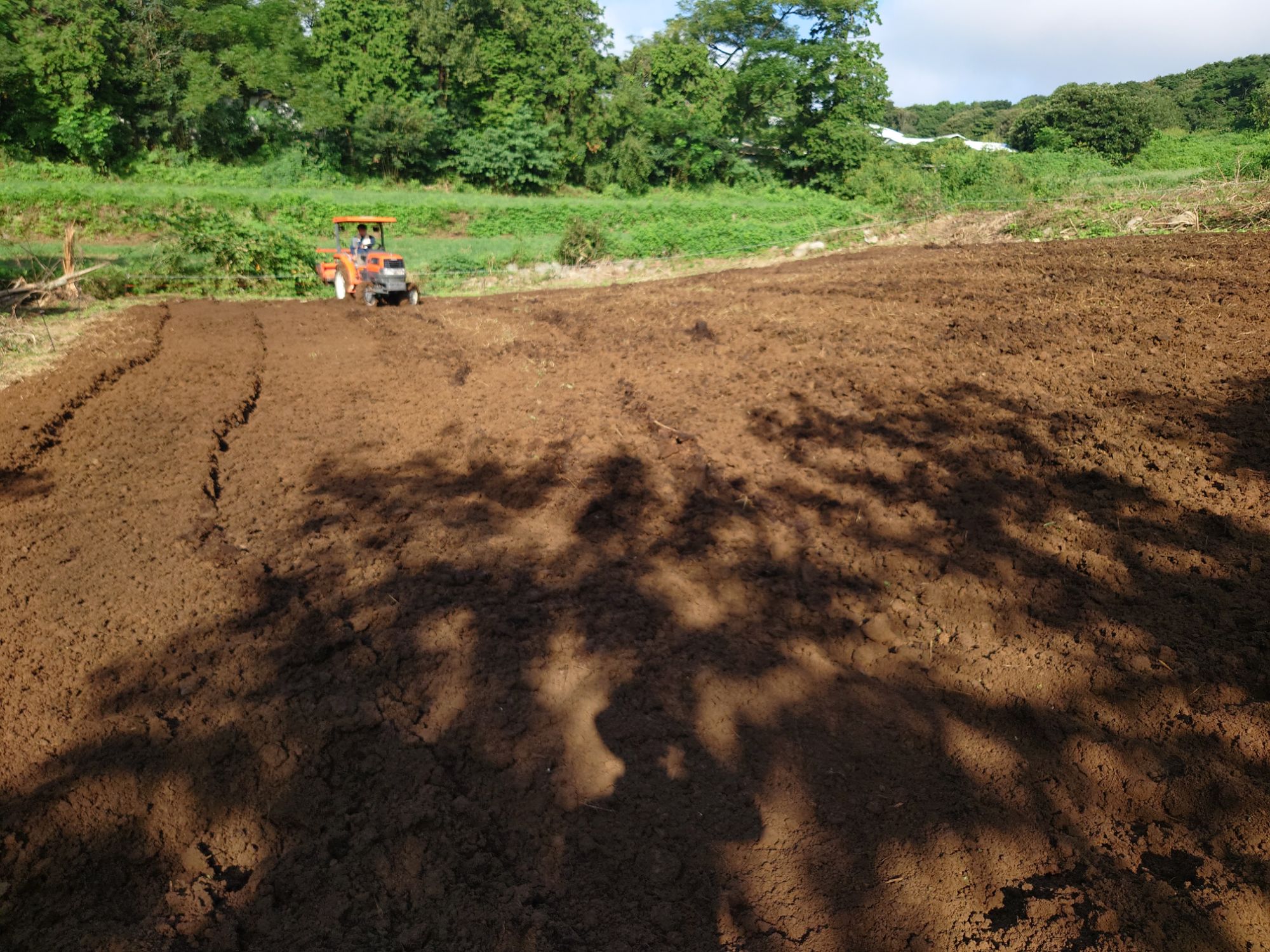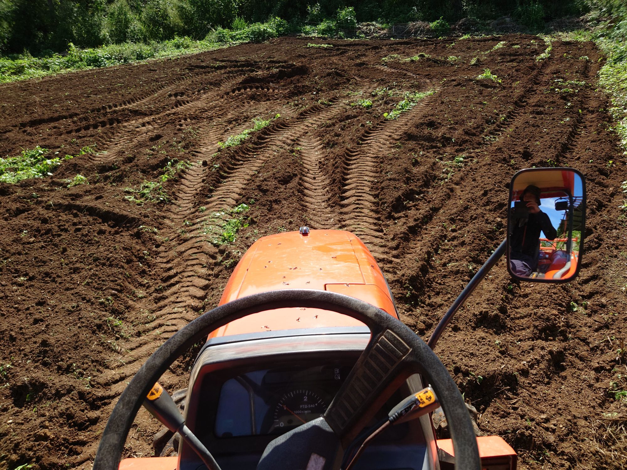 ホイールローダーで石の発掘するときに荒らしてしまった畑を耕耘です。