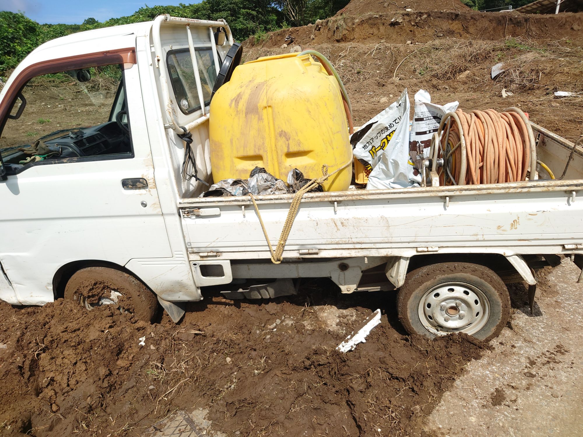専務に報告して、トラクターで上げてもらうことにしましたが、専務が来る前に何とか自走で脱出でした。