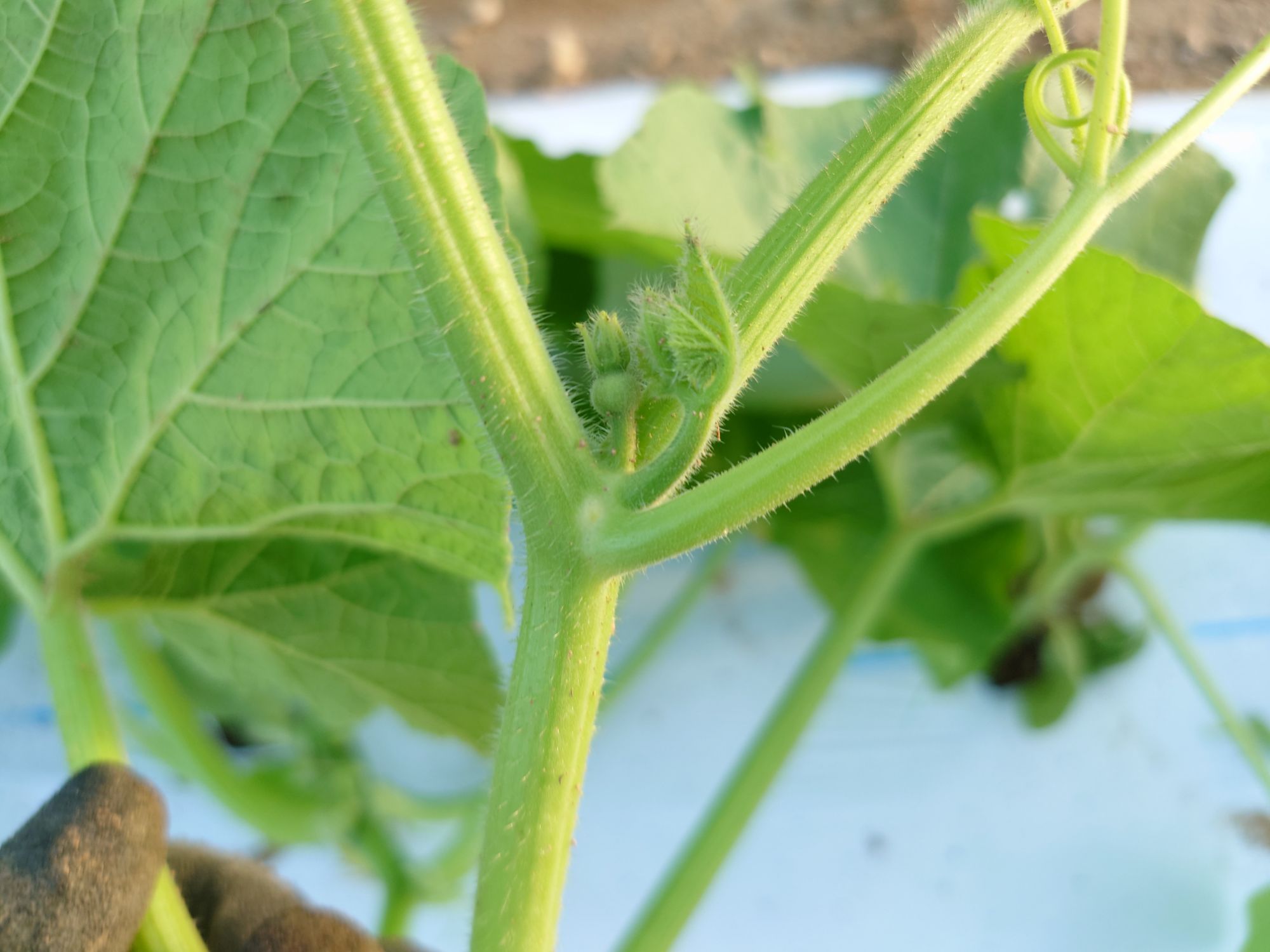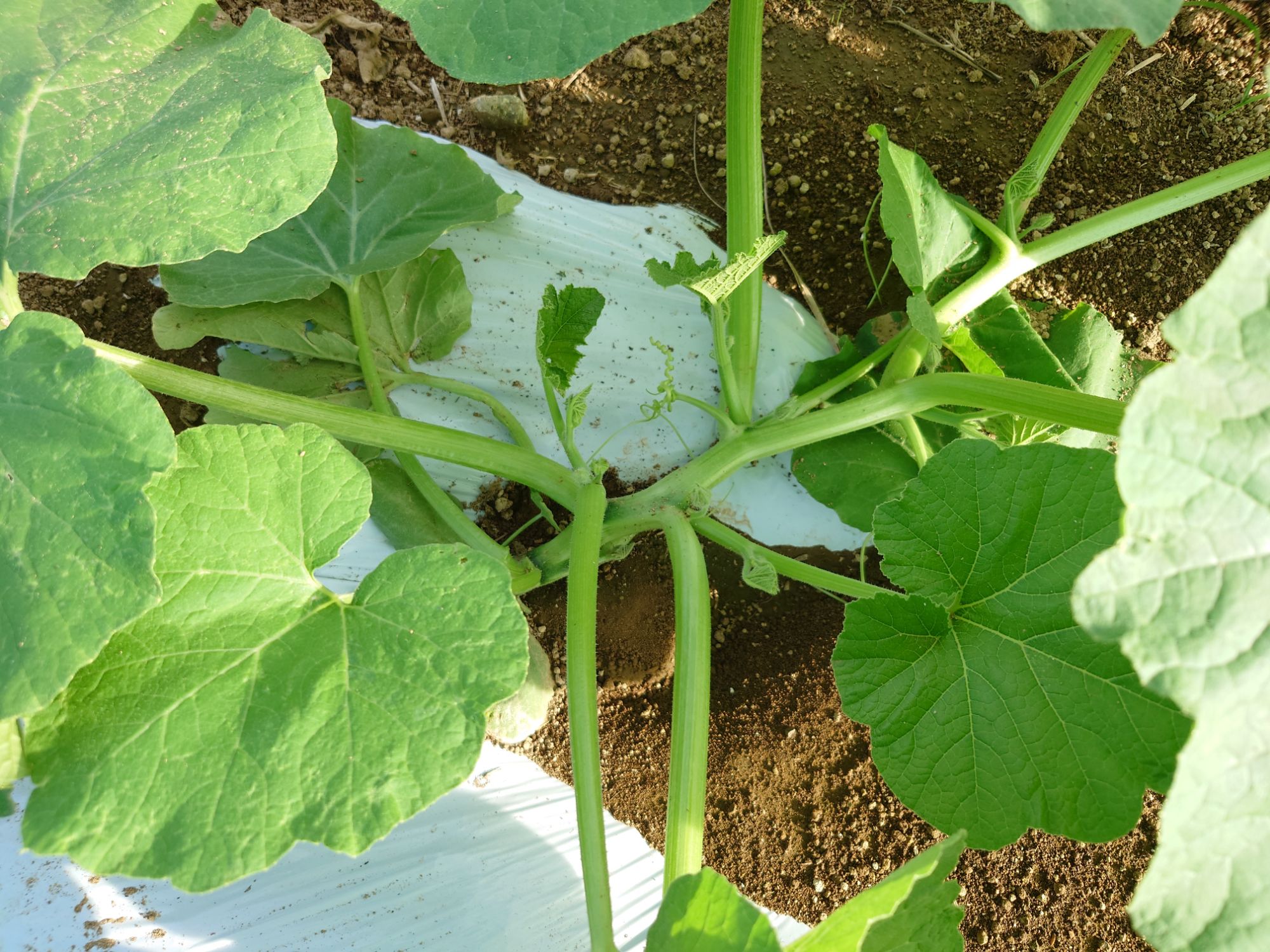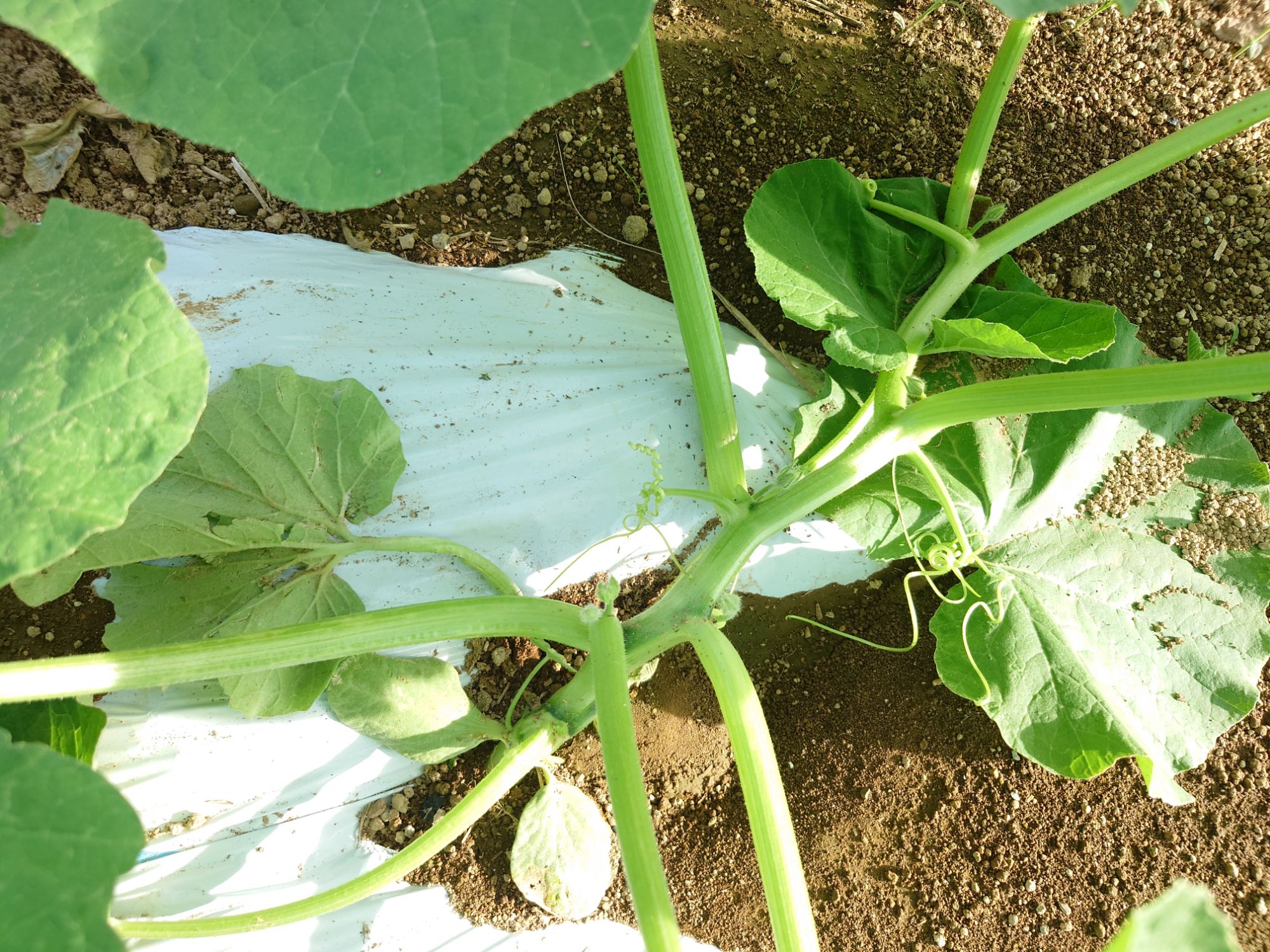 初のカボチャの芽かきなので、クボさんに教えてもらい、やりました。