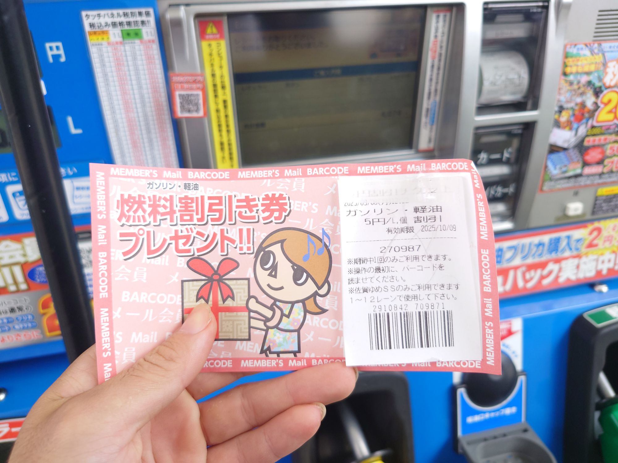 エネオスアプリを使うと割引があるので、この旅に出る前に設定していました。