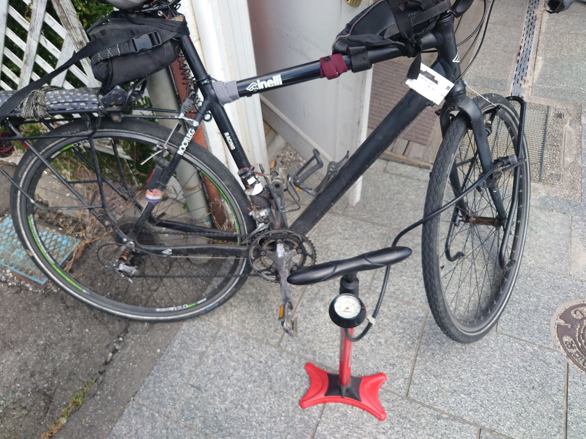 『サイクルショップ サンダーロード』で相棒の空気を入れます。