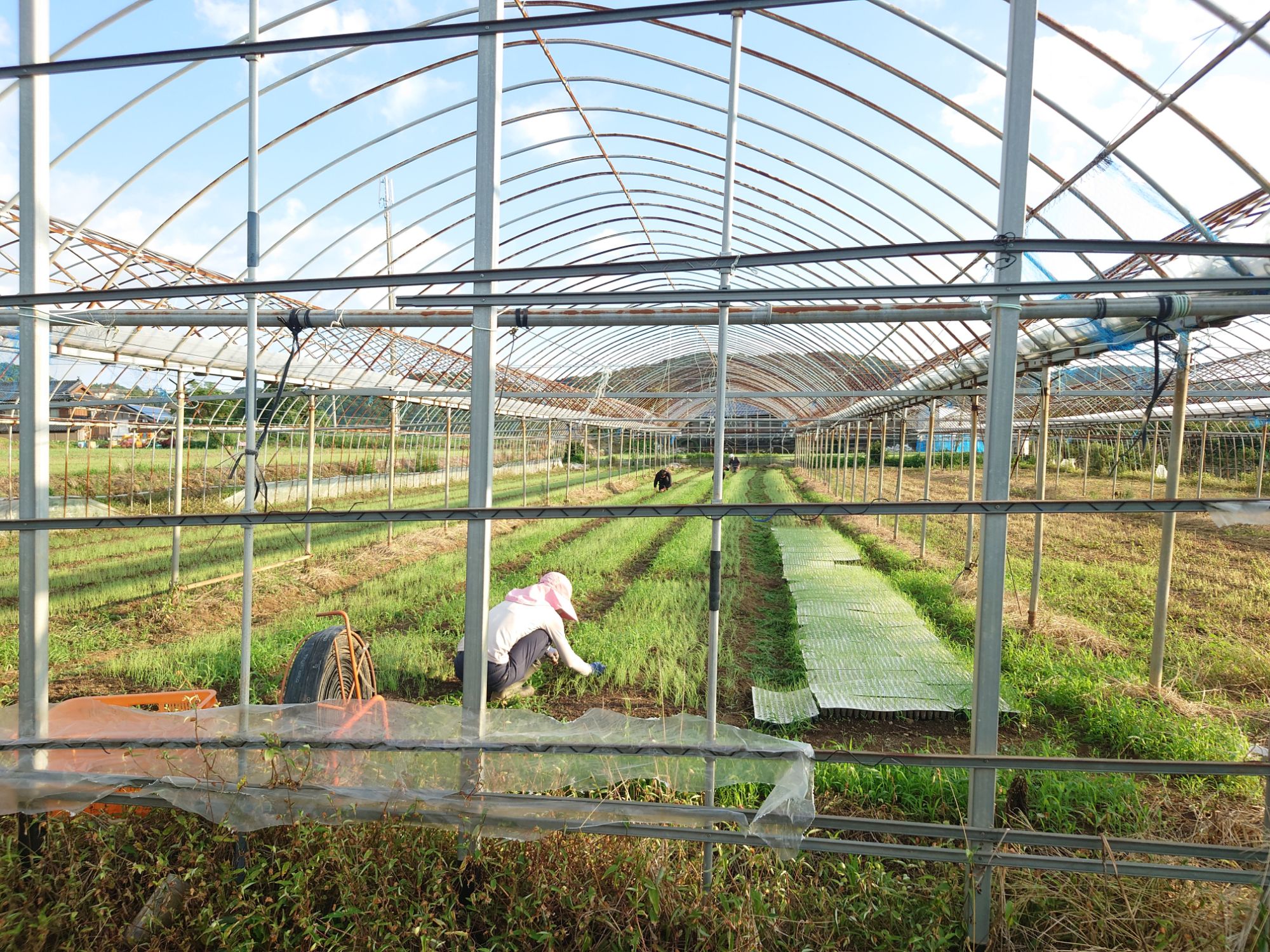 扇会のメンバー全員でたまねぎのハウスの草ひきをしていました。
