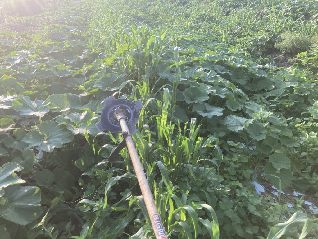 午前の作業は防除と、玉ねぎの水やりと、ソルゴー刈りです。
