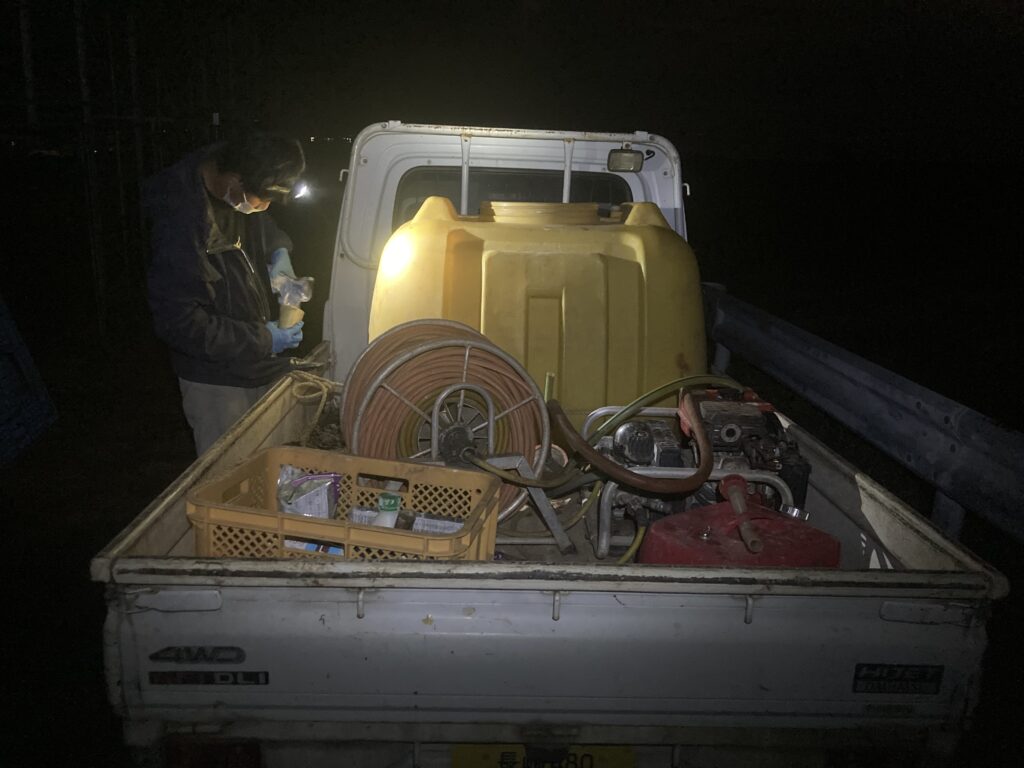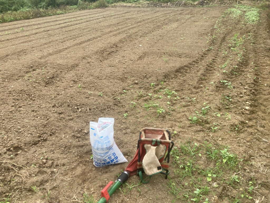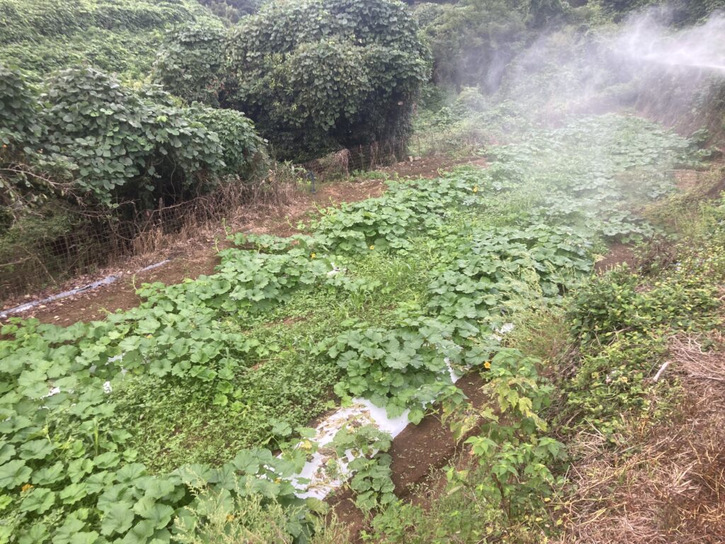 今日の作業は防除と、玉ねぎの水やりと、肥料撒きです。