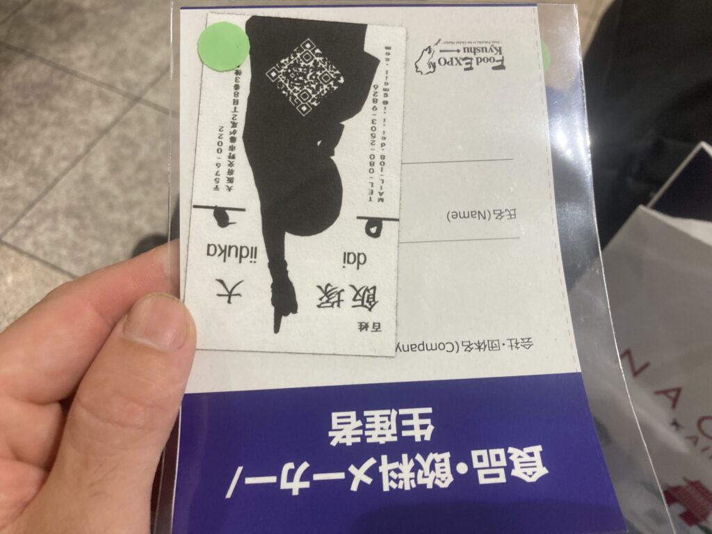 澳オリーブがFOODEX2025に参加した時にも同じように、僕の名刺を入れました。