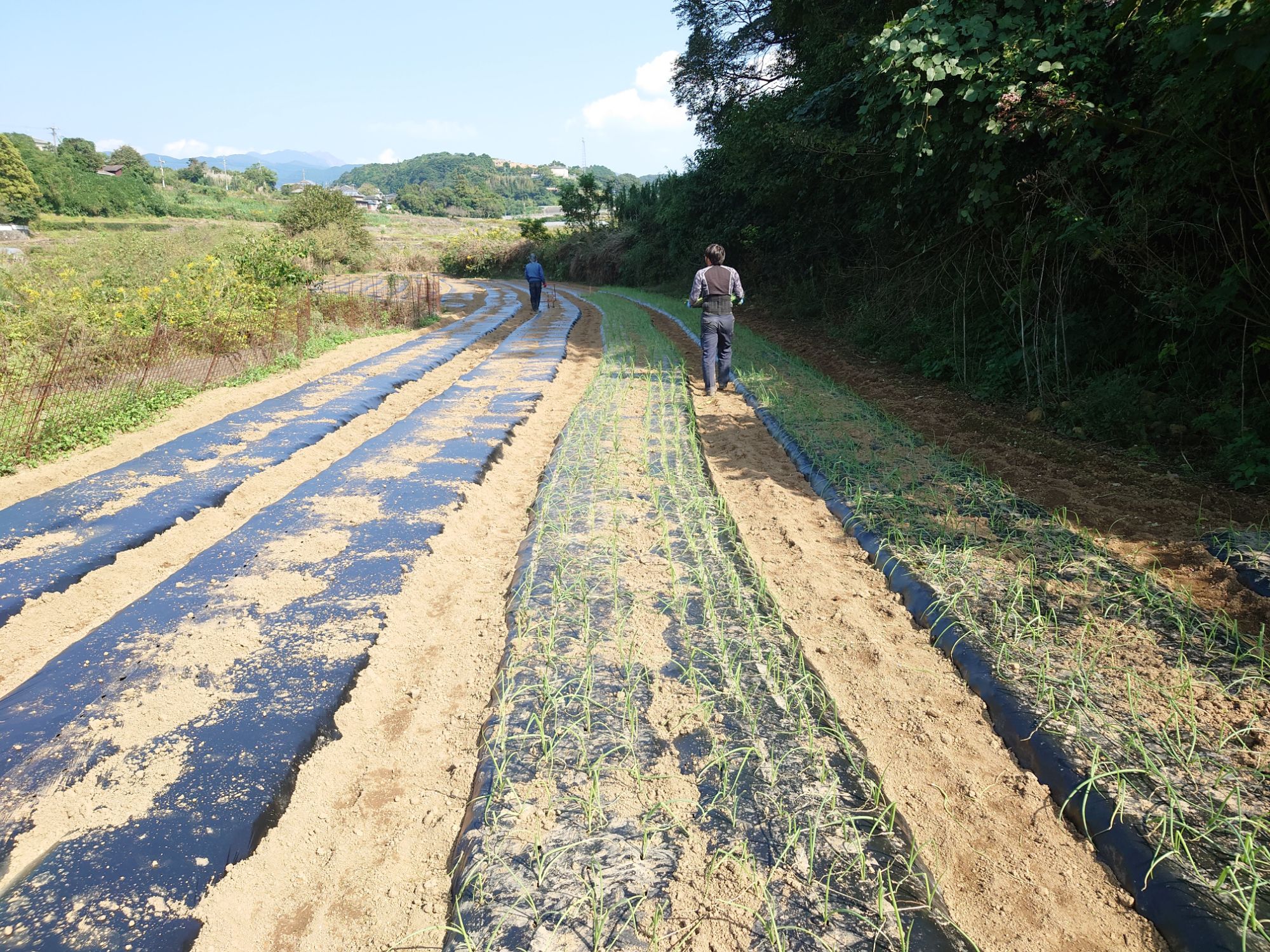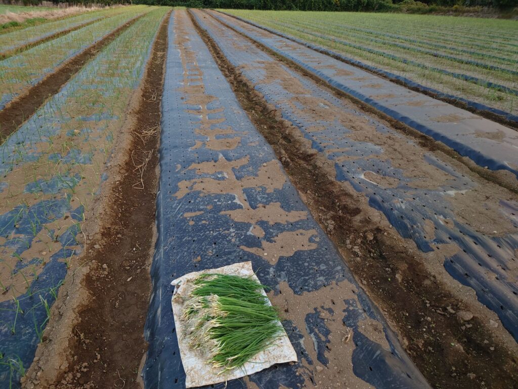 午前の作業は玉ねぎの定植です。