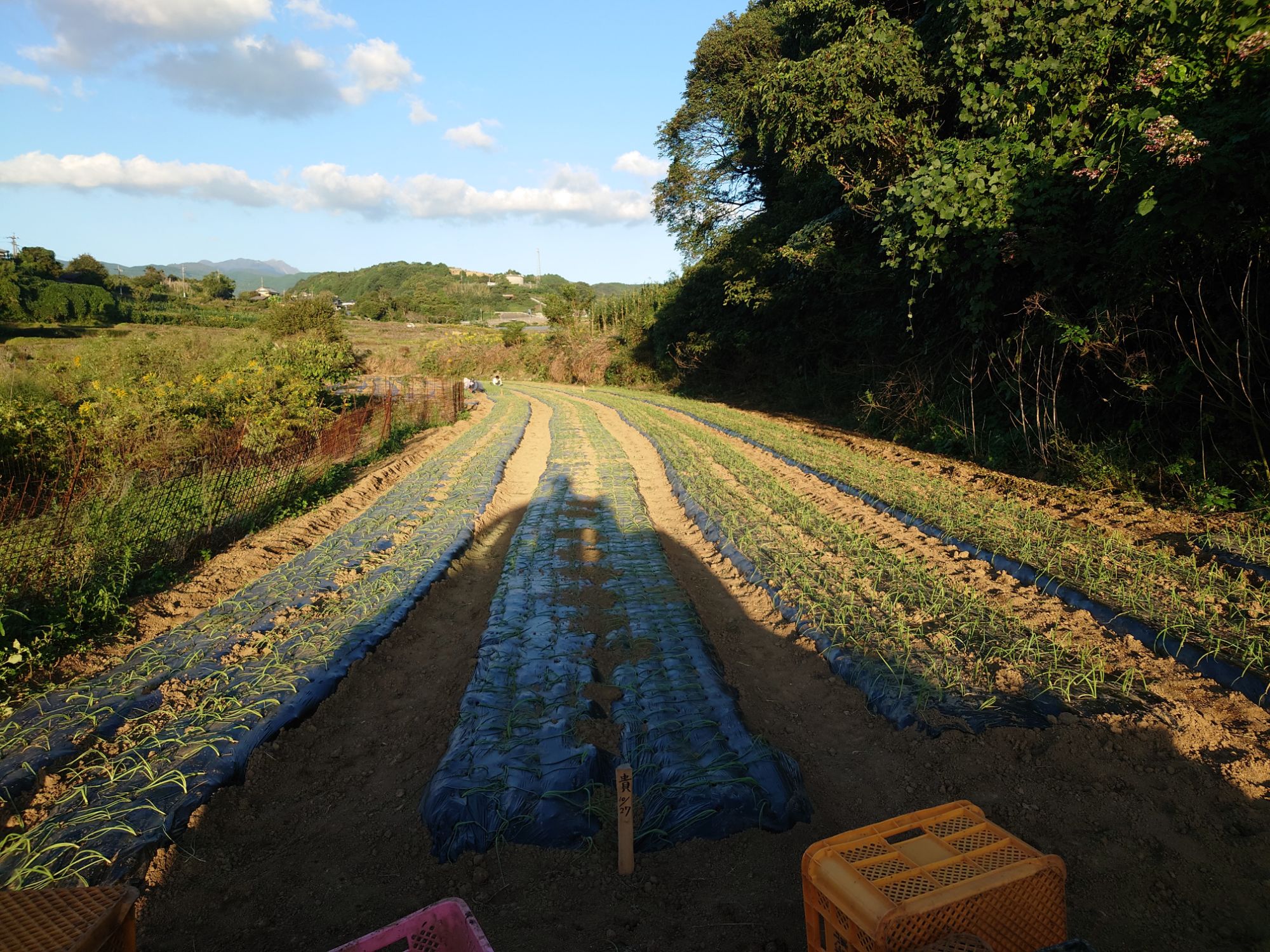 午後の作業は玉ねぎの定植と、かぼちゃの防除と、水やりの補助と、石拾いです。