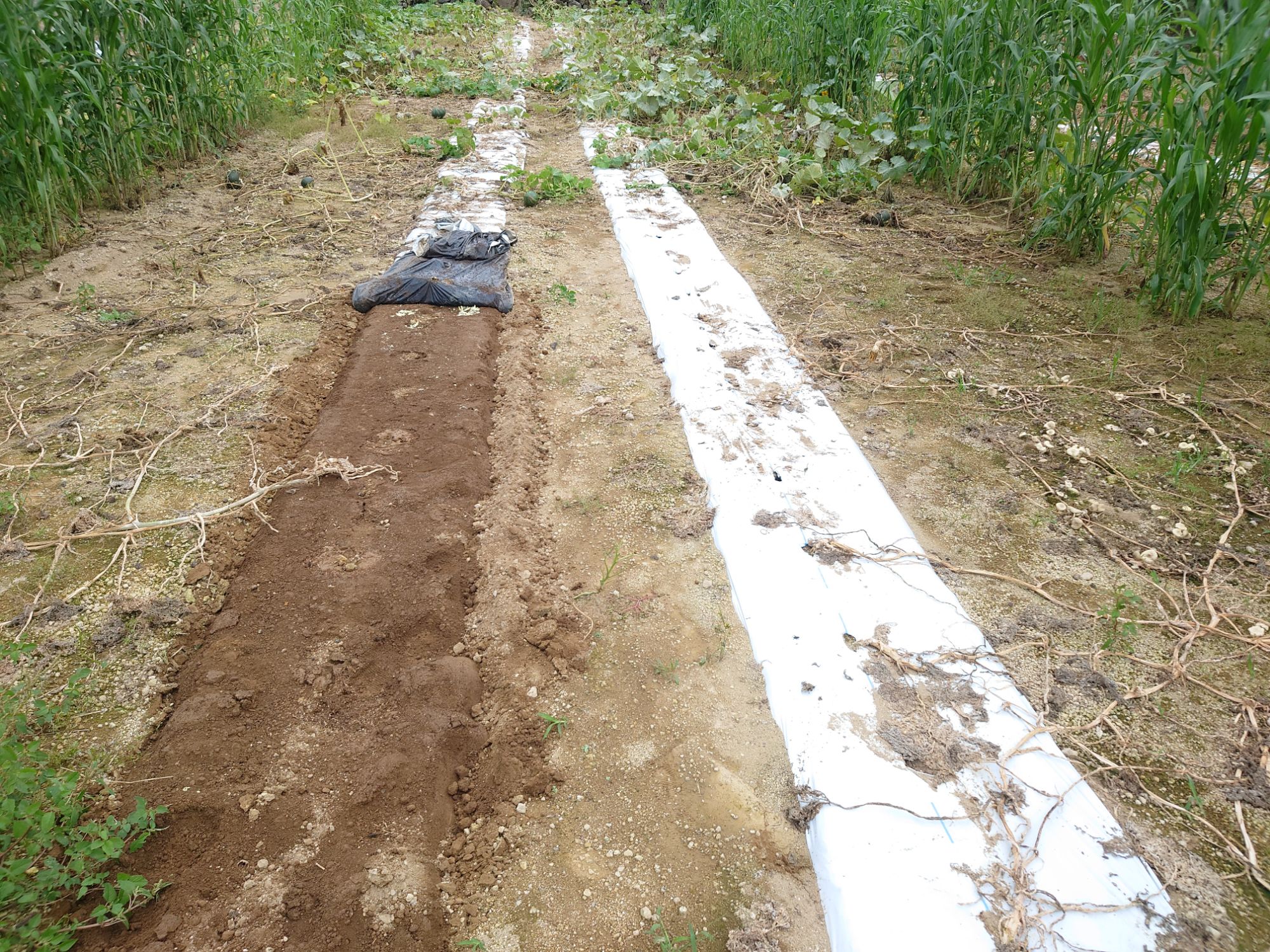 今日の作業はカボチャの収穫と、マルチ剥がしと、ハンマーナイフモアかけです。