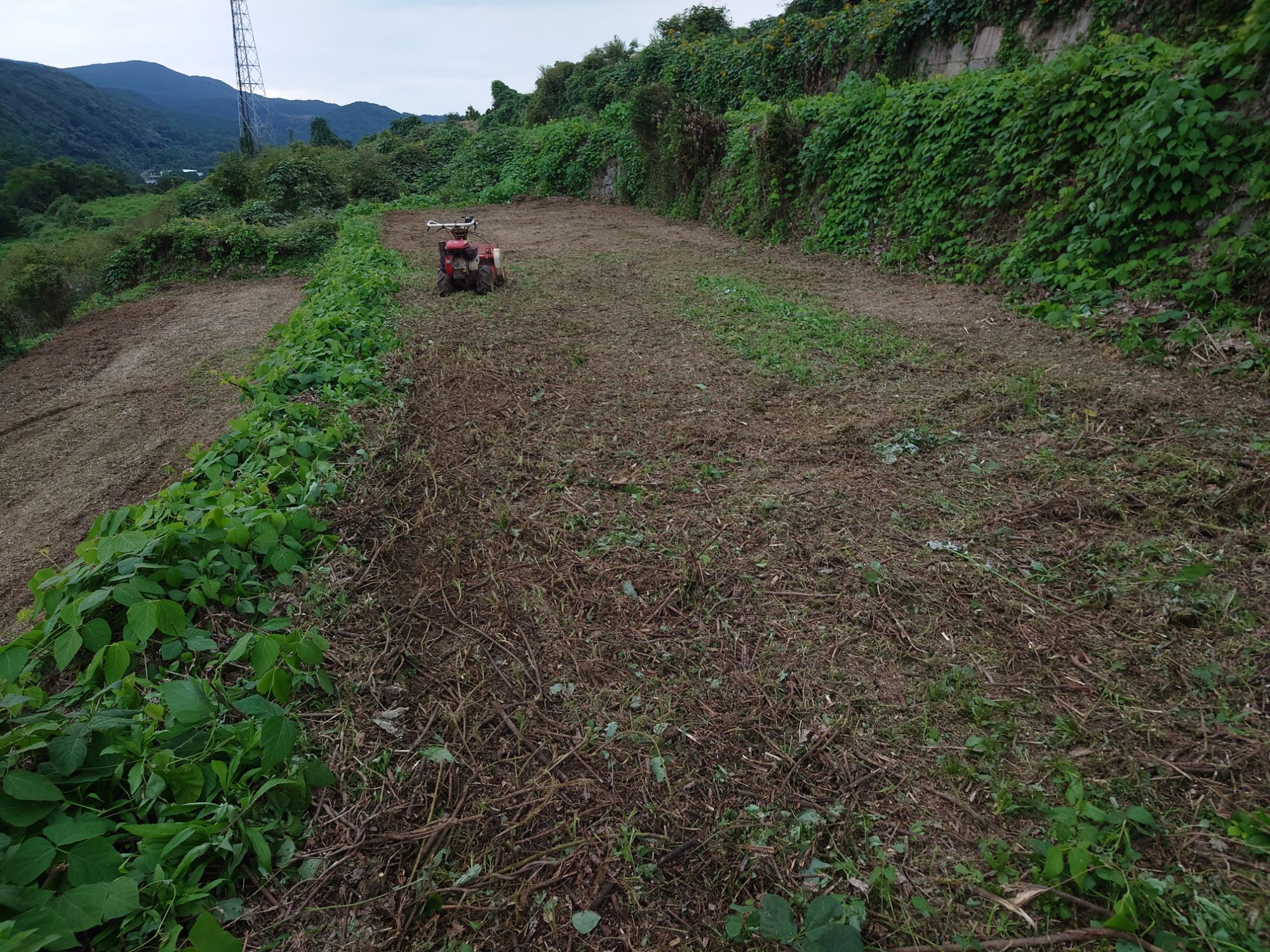 土に埋まったツル草がなかなか厄介な感じで、ハンマーナイフモアを使って、ある程度取り除いていきました。