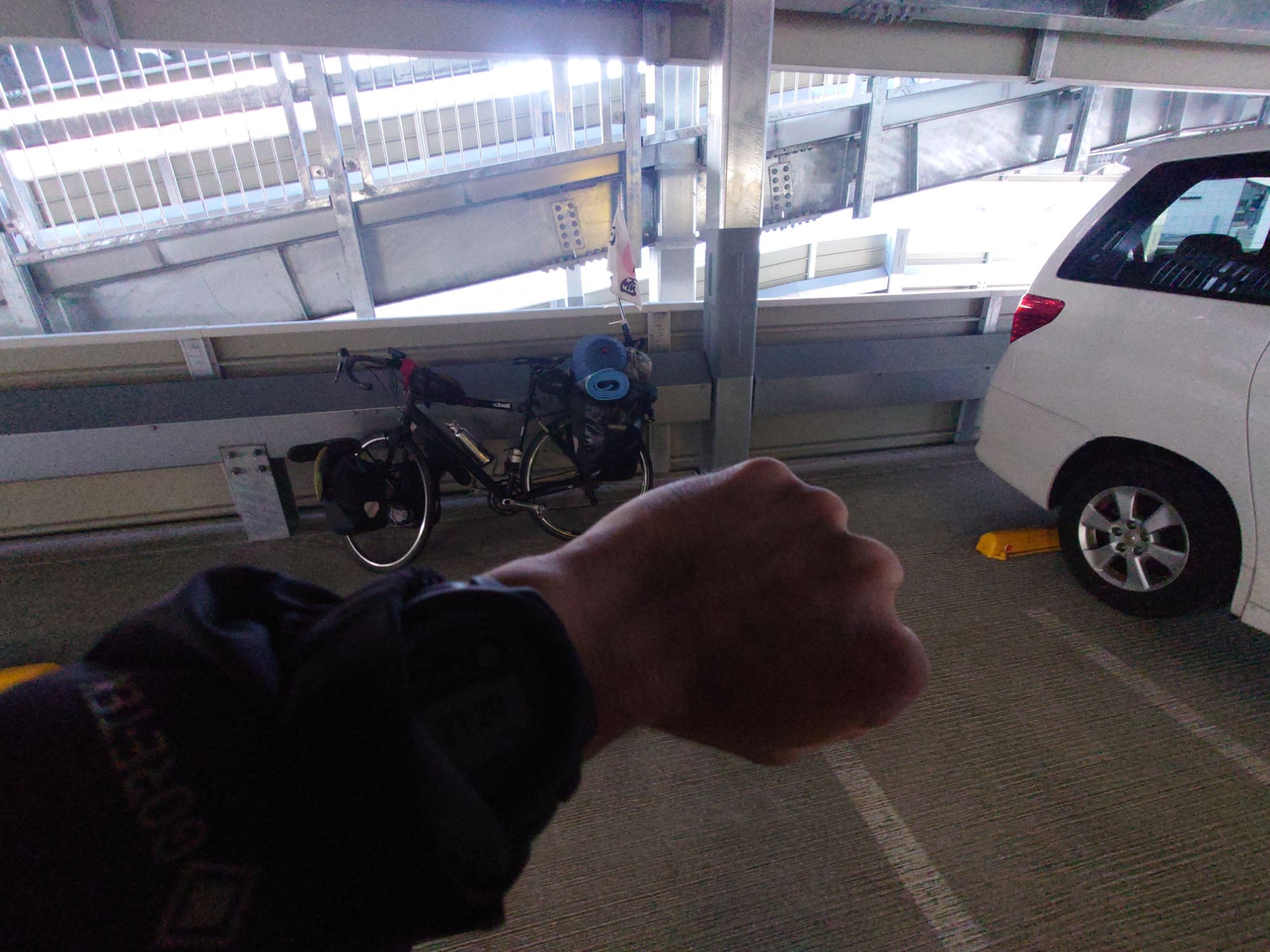 立体駐車場で相棒に荷造りします。