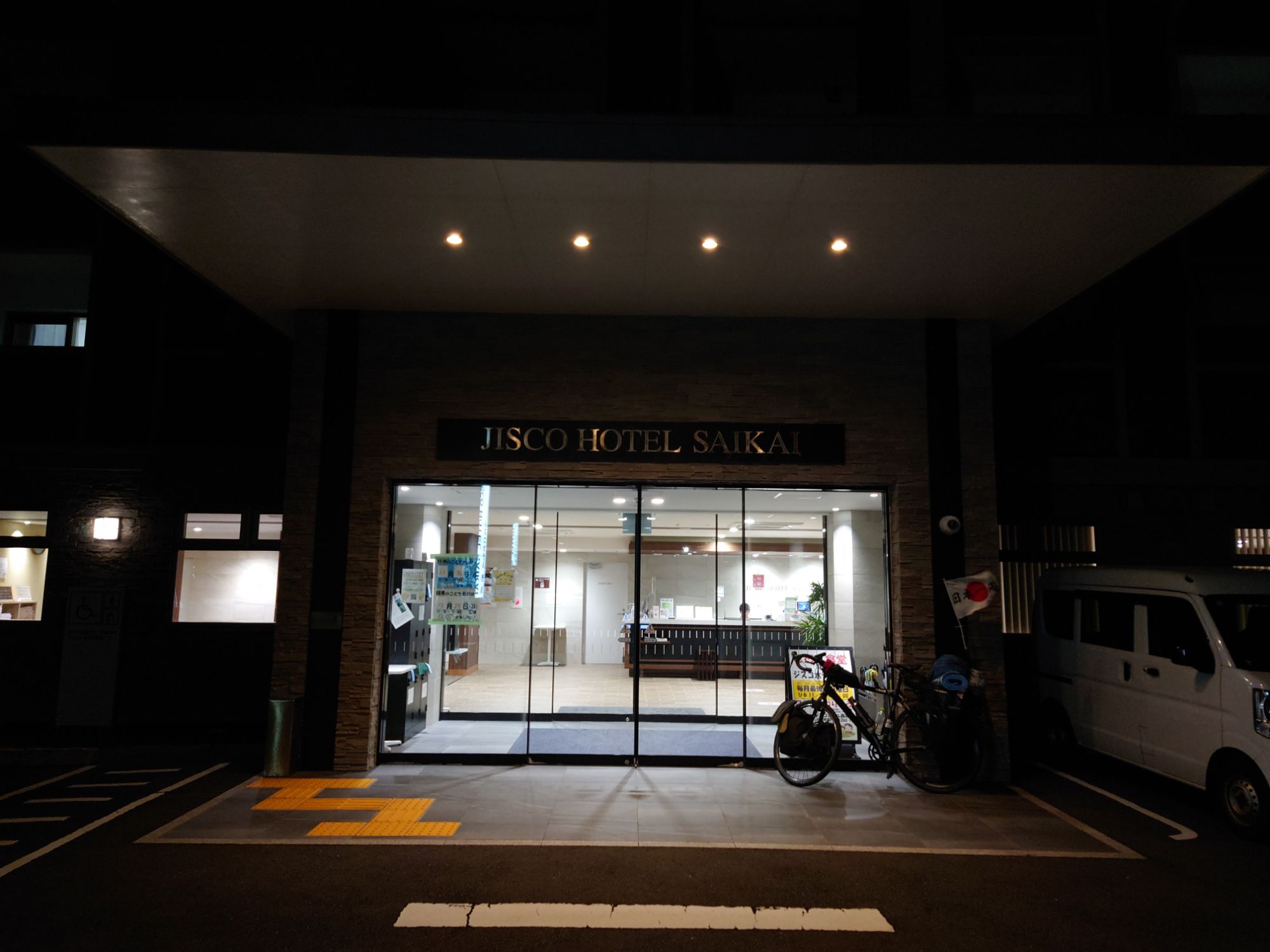 本日のお宿、『ジスコホテル西海』に21時頃に到着です。