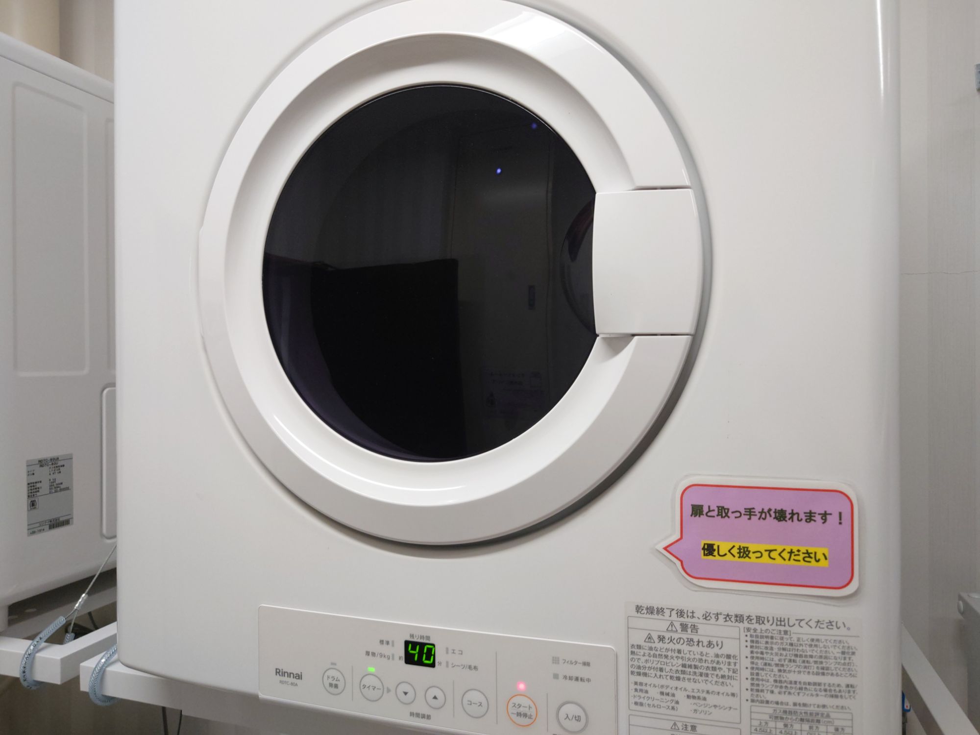 ジスコホテル西海では洗濯機・洗剤・乾燥機が無料で使えるようでした。