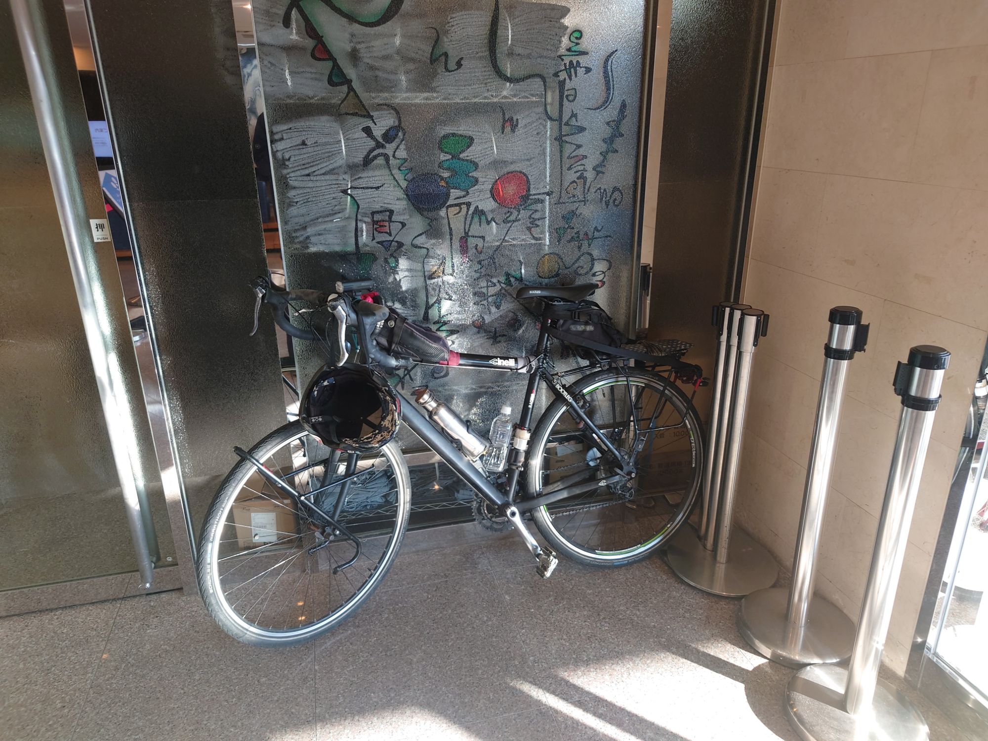 荷物を下ろして、相棒を置かしてもらいました。