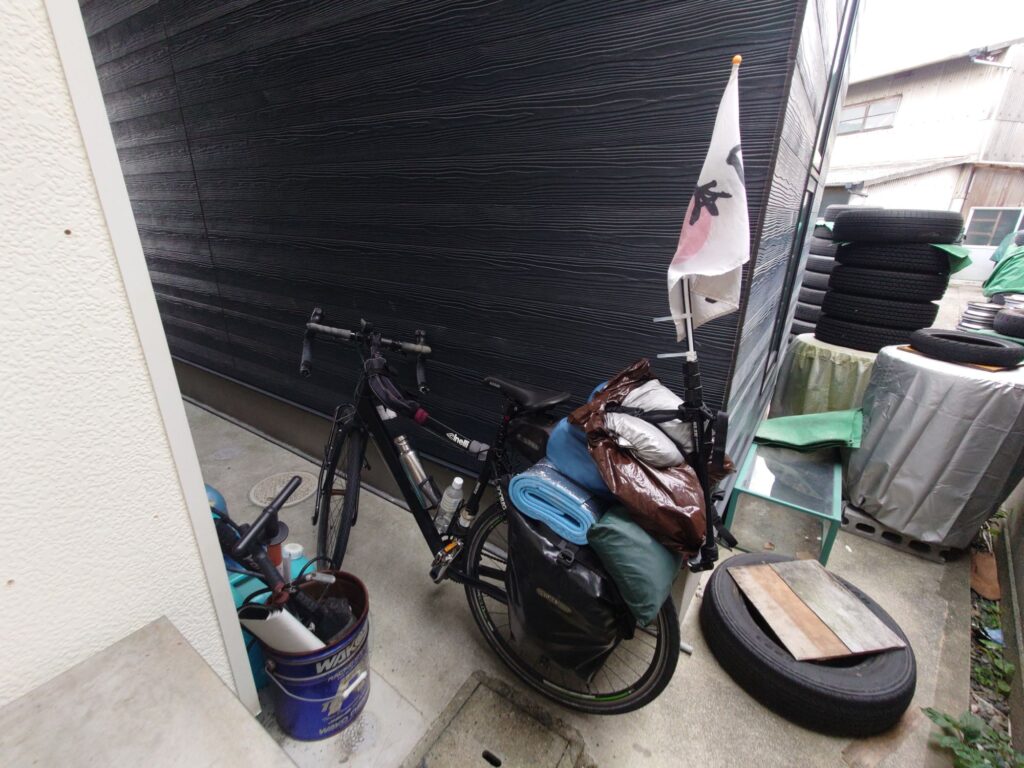 部屋に荷物を置く場所が無かったので、相棒に積んだままにしておきました。