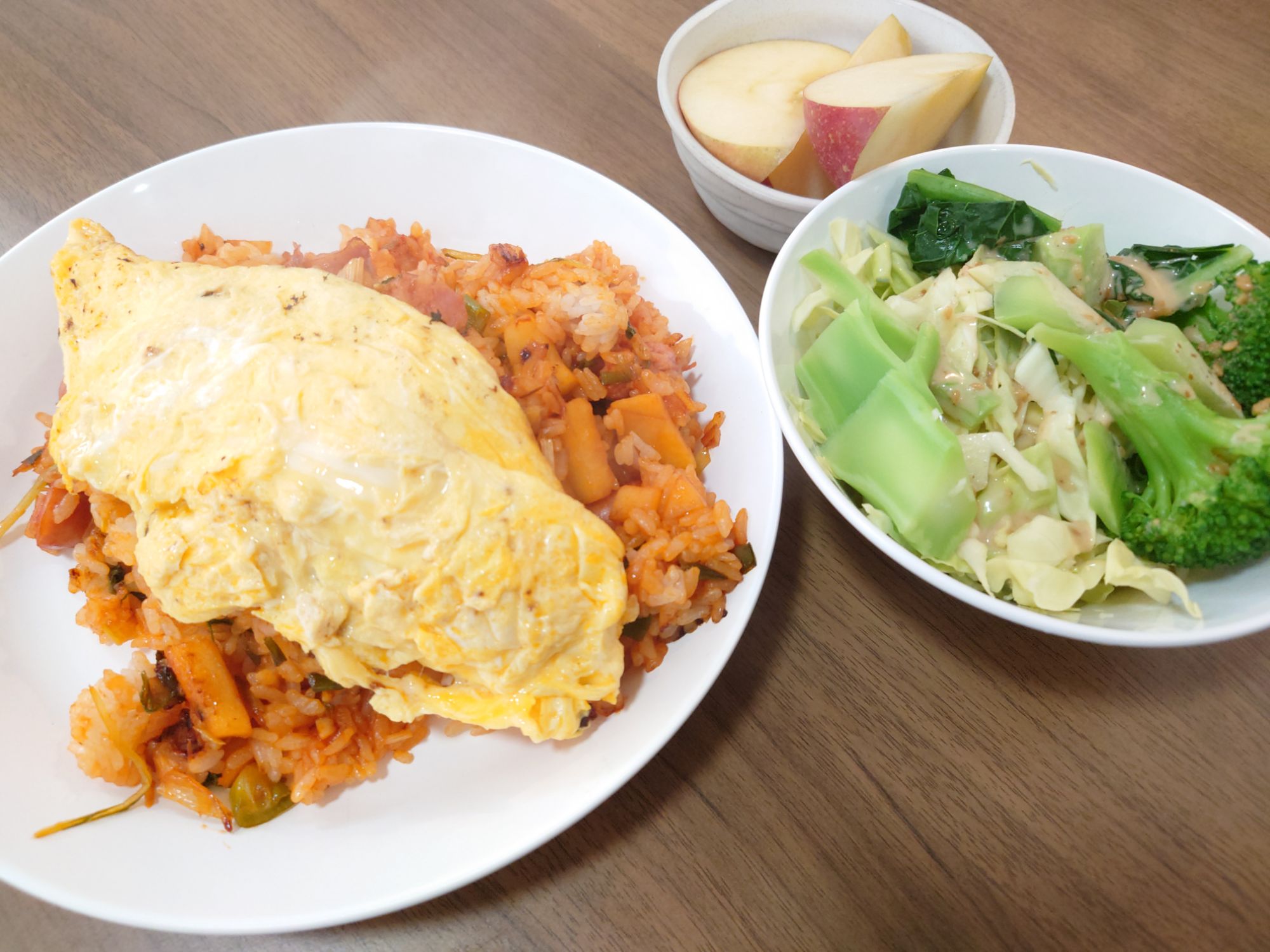 リンゴが沢山あるので、ケチャップライスに入れてみました。