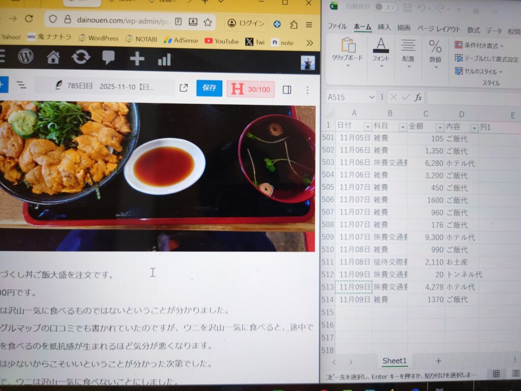 福岡編ではホテル暮らしをしていたので、かなり金額が伸びました。