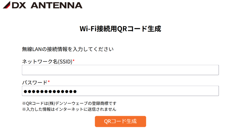 次にこのシェアハウスに来る方用にwifiのQRコードを作成です。