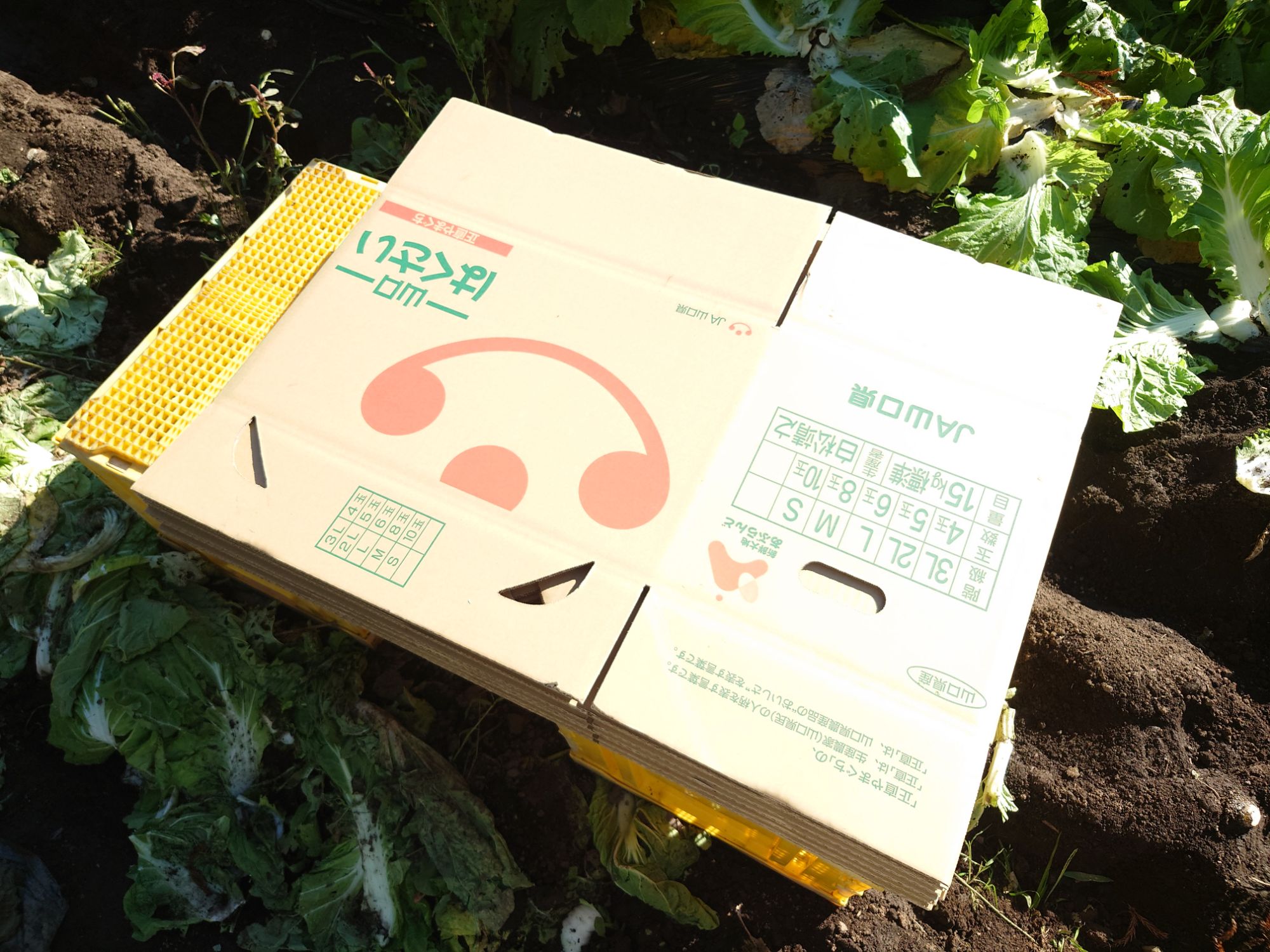 そんな感じで、今日の作業はマルチ剥ぎと、段ボールづくりと、白菜の箱詰めでした。