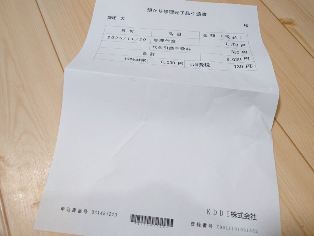 代金引換手数料の値段を含めた金額の紙が入っていました。
