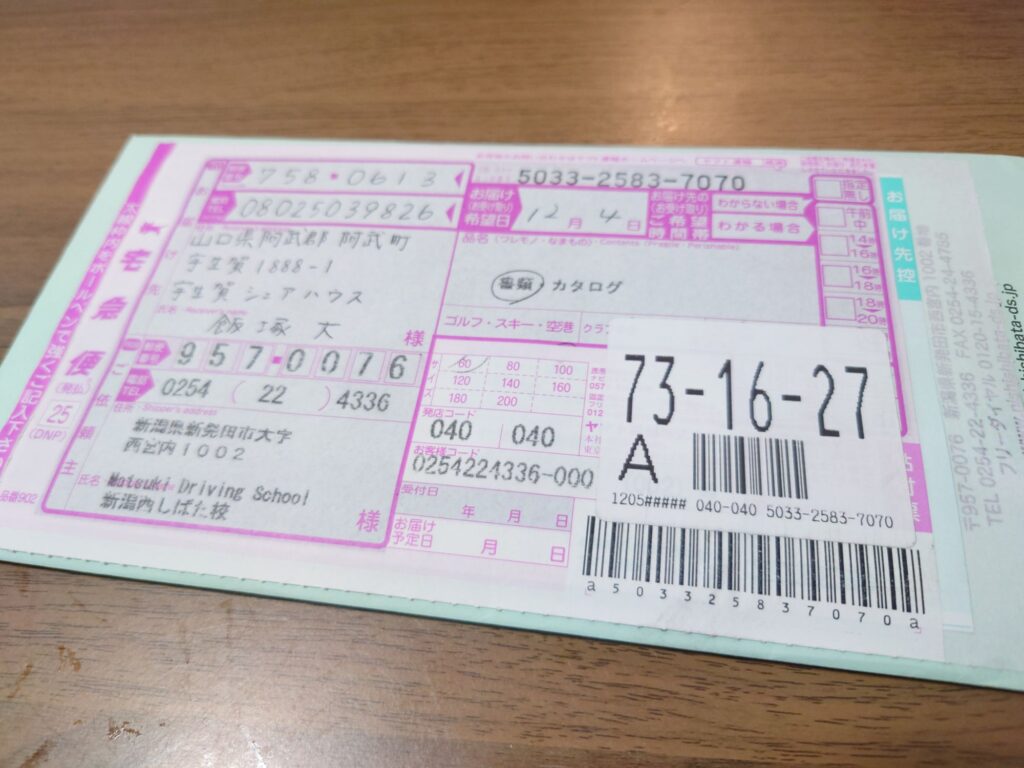 初めは自宅に送る感じでしたが、こっちに送るように手配しました。