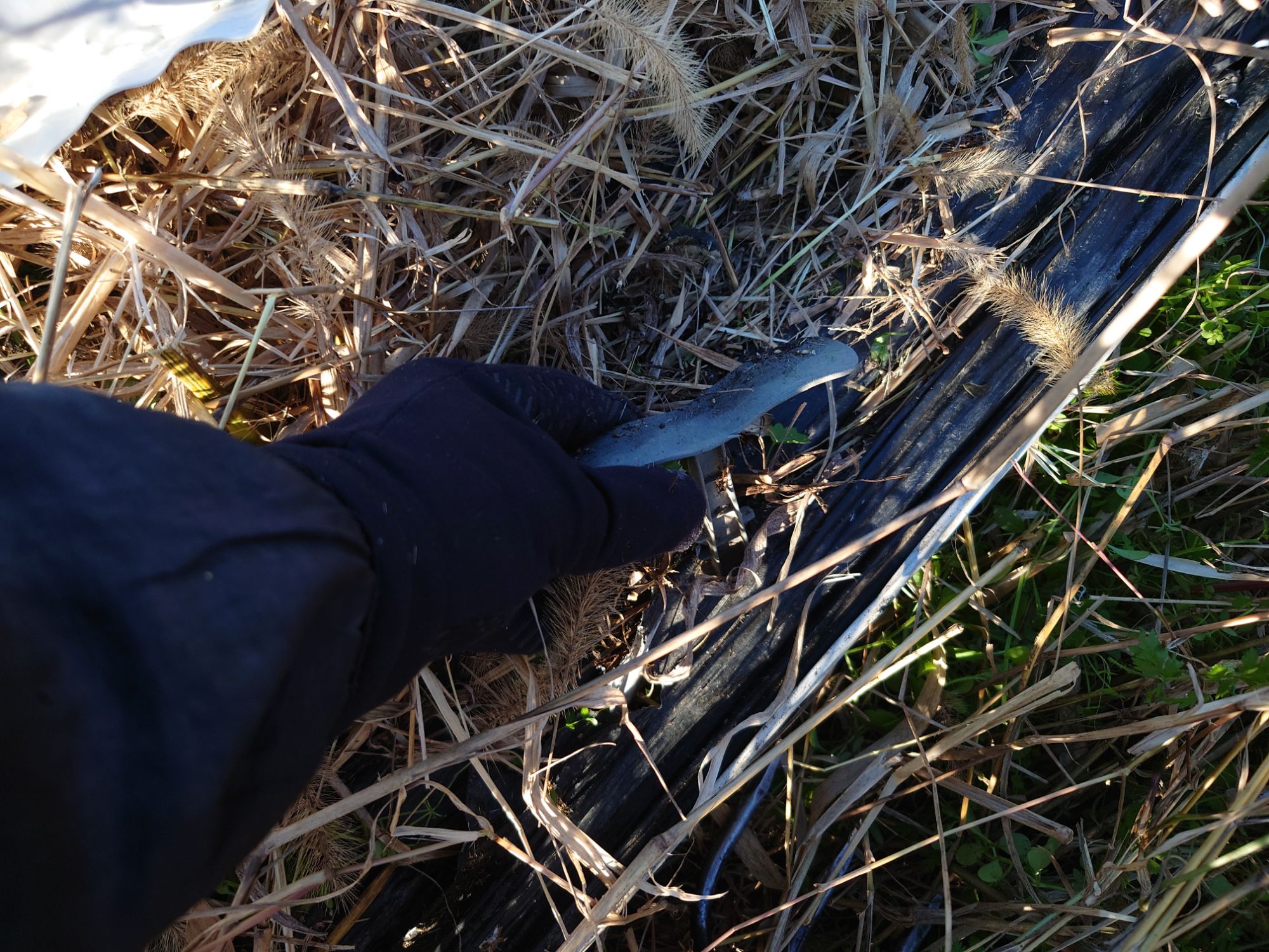 マルチ留めを回収後に前回ガス欠で途中までだったところを刈っていきます。