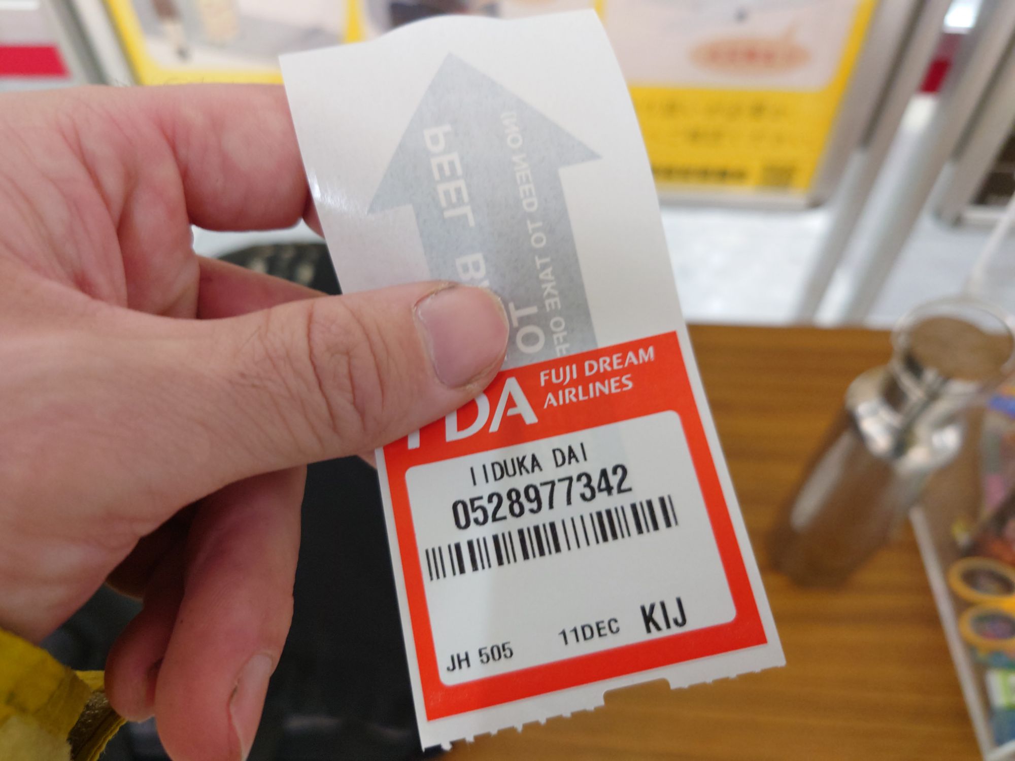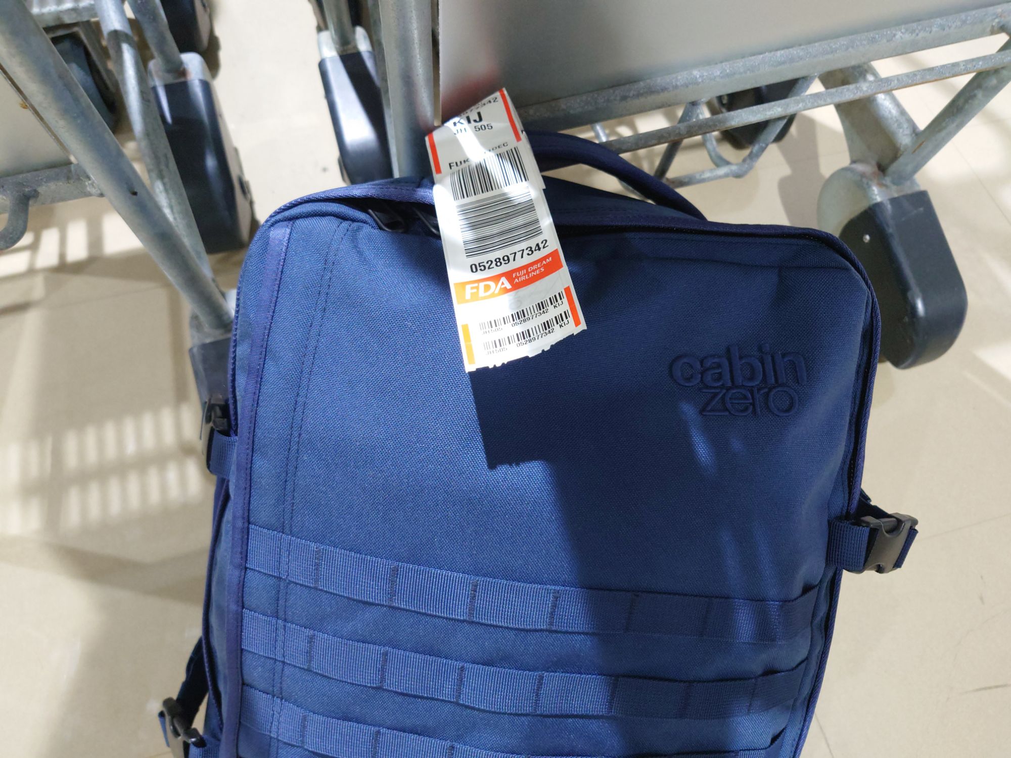 フジドリームエアラインズのカバン機内持ち込みは重量制限は10kgで、僕のは2つのカバンの合計が12kgぐらいだったので、重たい方のカバンを1つ預けました。