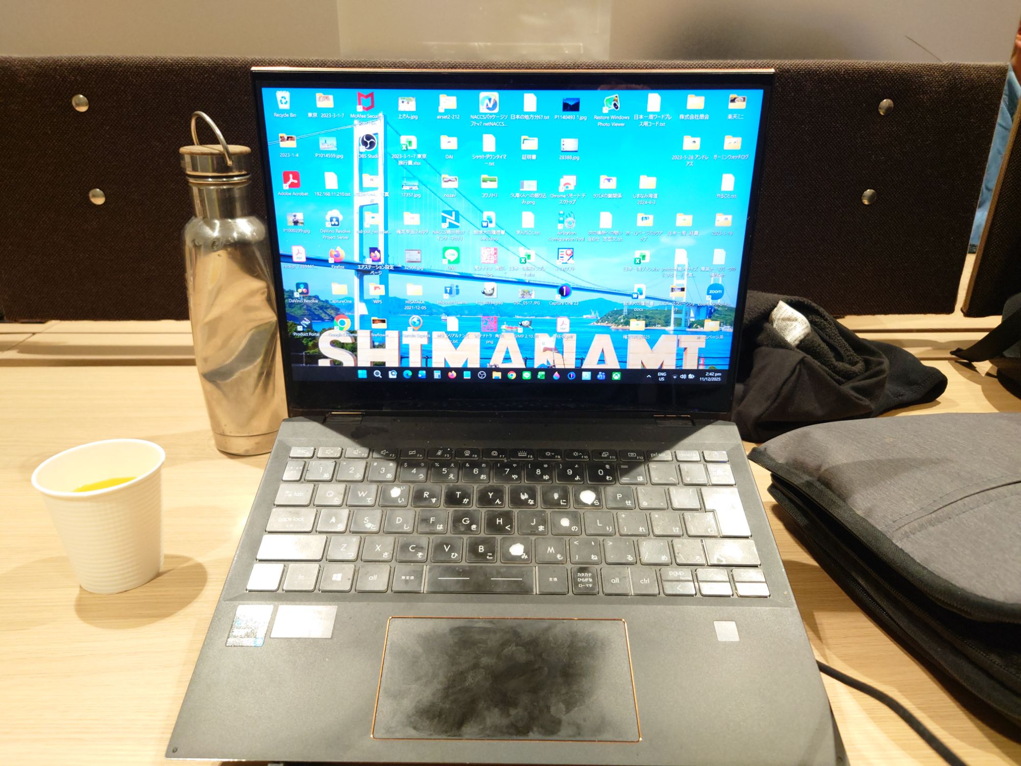 空港ラウンジでPCを使います。