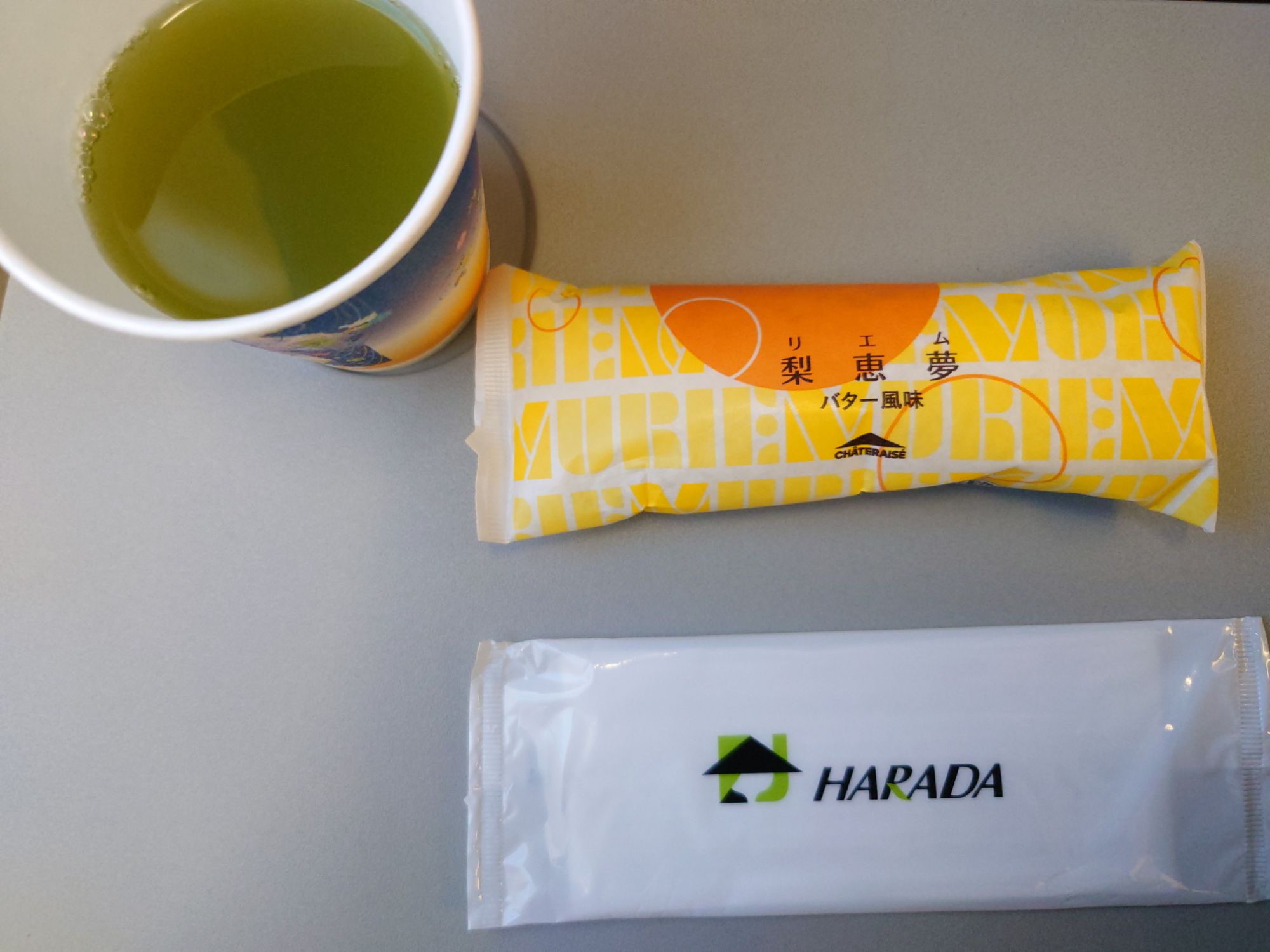 お菓子と静岡茶です。
