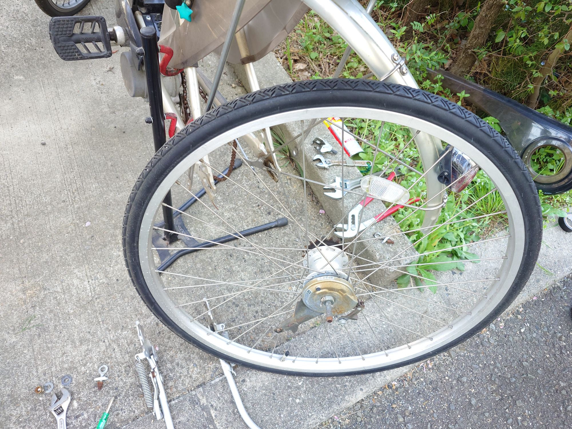 団地に置かれている別の電動自転車を見て、「もう電動自転車の後輪外せるなー。見える景色変わったー」と思いました。