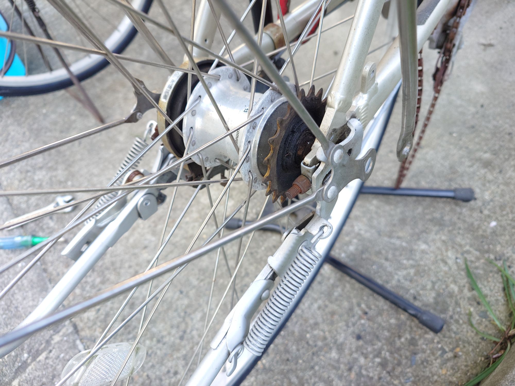 昨日、ママチャリのタイヤ交換時にスタンドの位置で苦労したので、ビフォー前の写真を見ながら、元通りにしていきました。