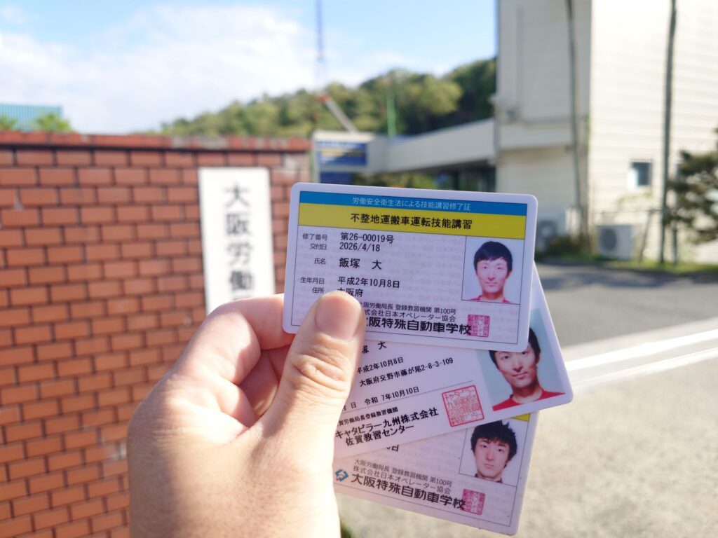 不整地運搬車運転技能という聞きなれない免許を大阪特殊自動車学校へ取りに行きました。