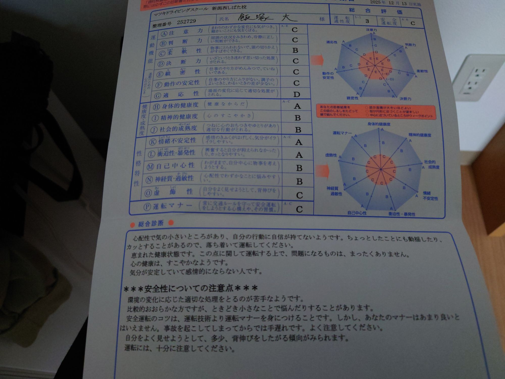 一昨日受けたOD安全テストの結果が昨日渡されていましたが、あげるのを忘れていたので、今日にあげました。