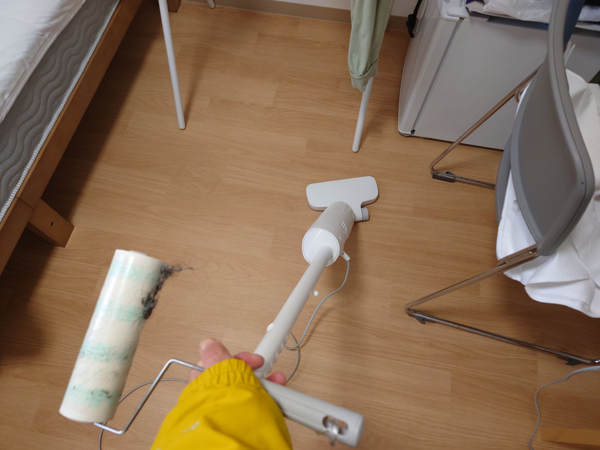 シーツを交換する前に掃除機をかけて、シーツを交換した後にも掃除機をかけました。