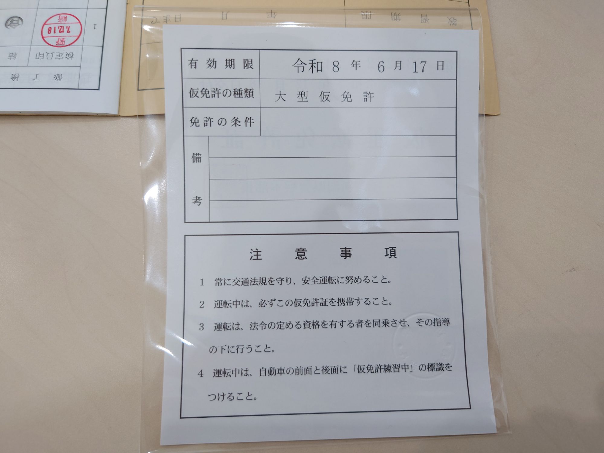 修了検定を合格したので、仮運転免許書をゲットです。