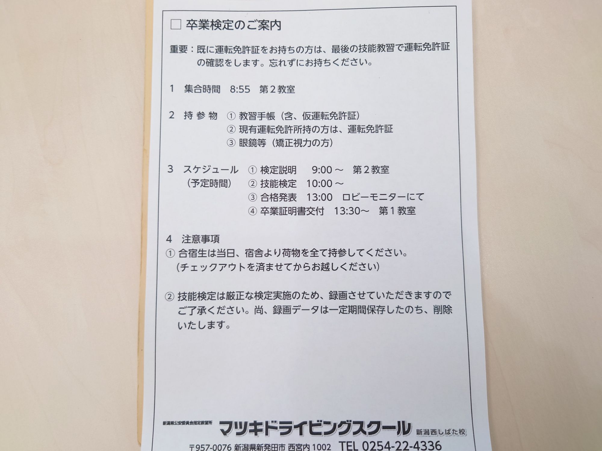卒業検定申込書後に、この紙を貰いました。