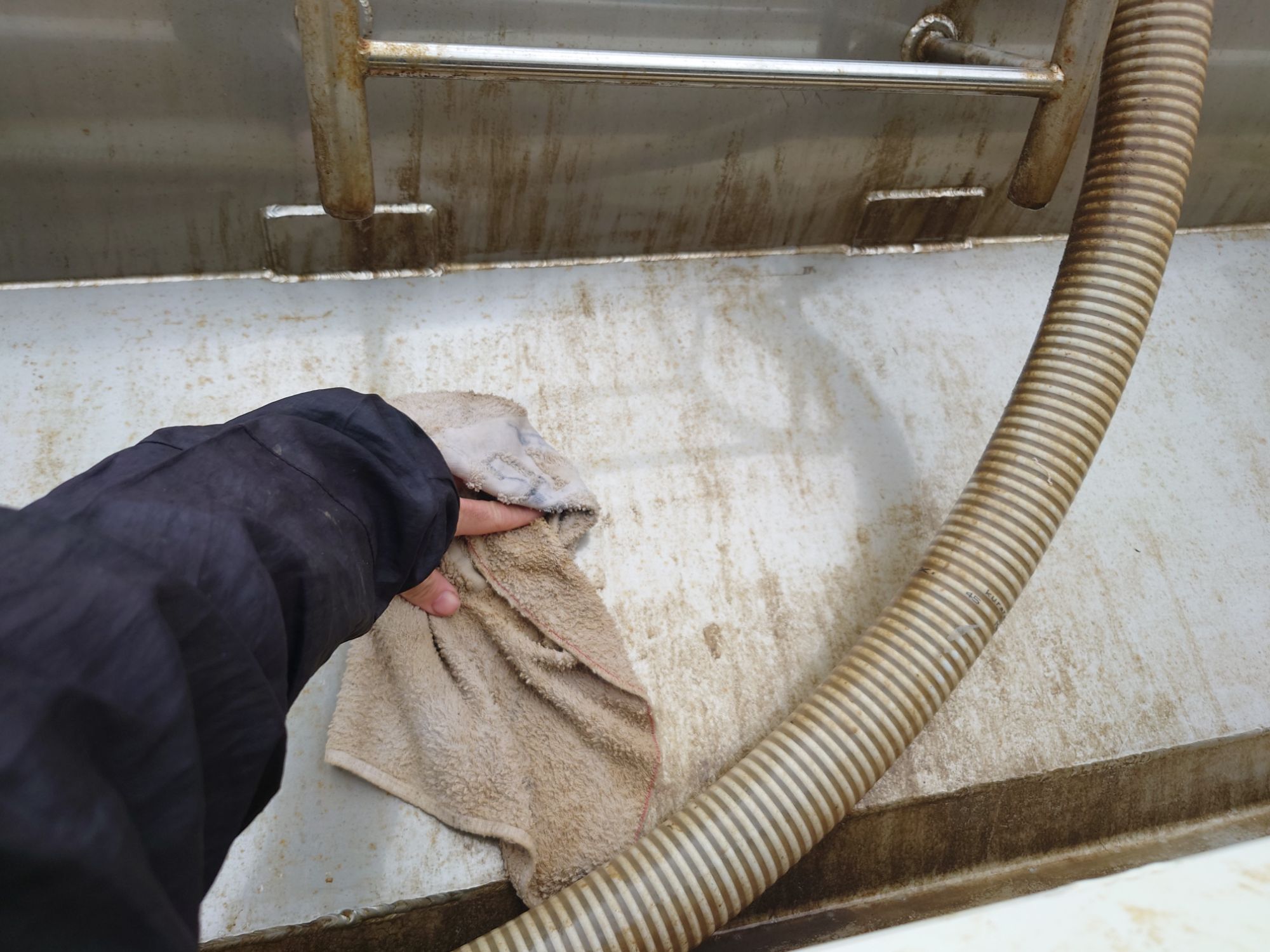その糖蜜散布班の車の洗車の手伝いでした。