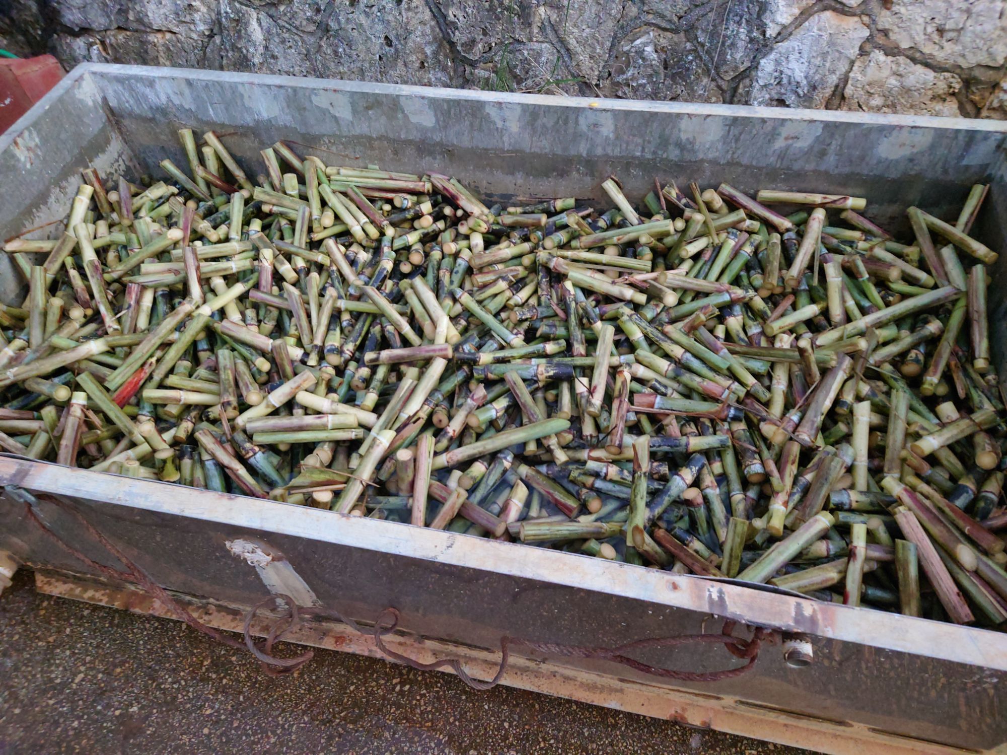 芽が2つになるように切られたサトウキビです。