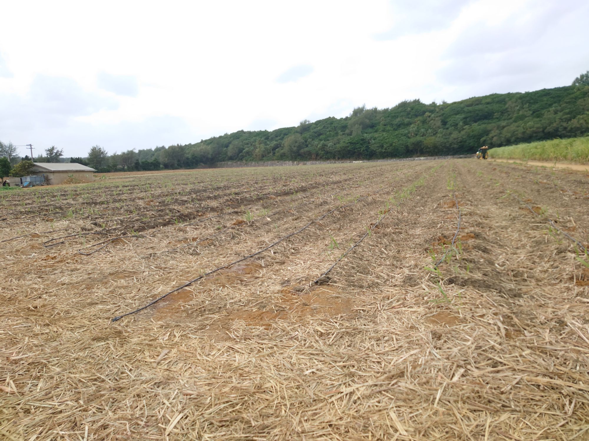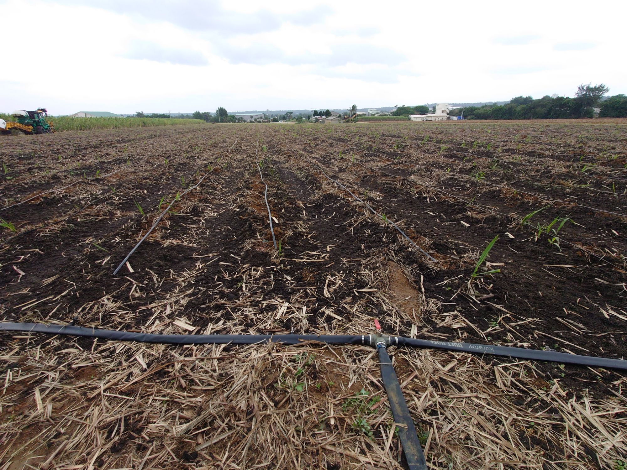 午前の作業はサトウキビの補植と潅水チューブ付けです。