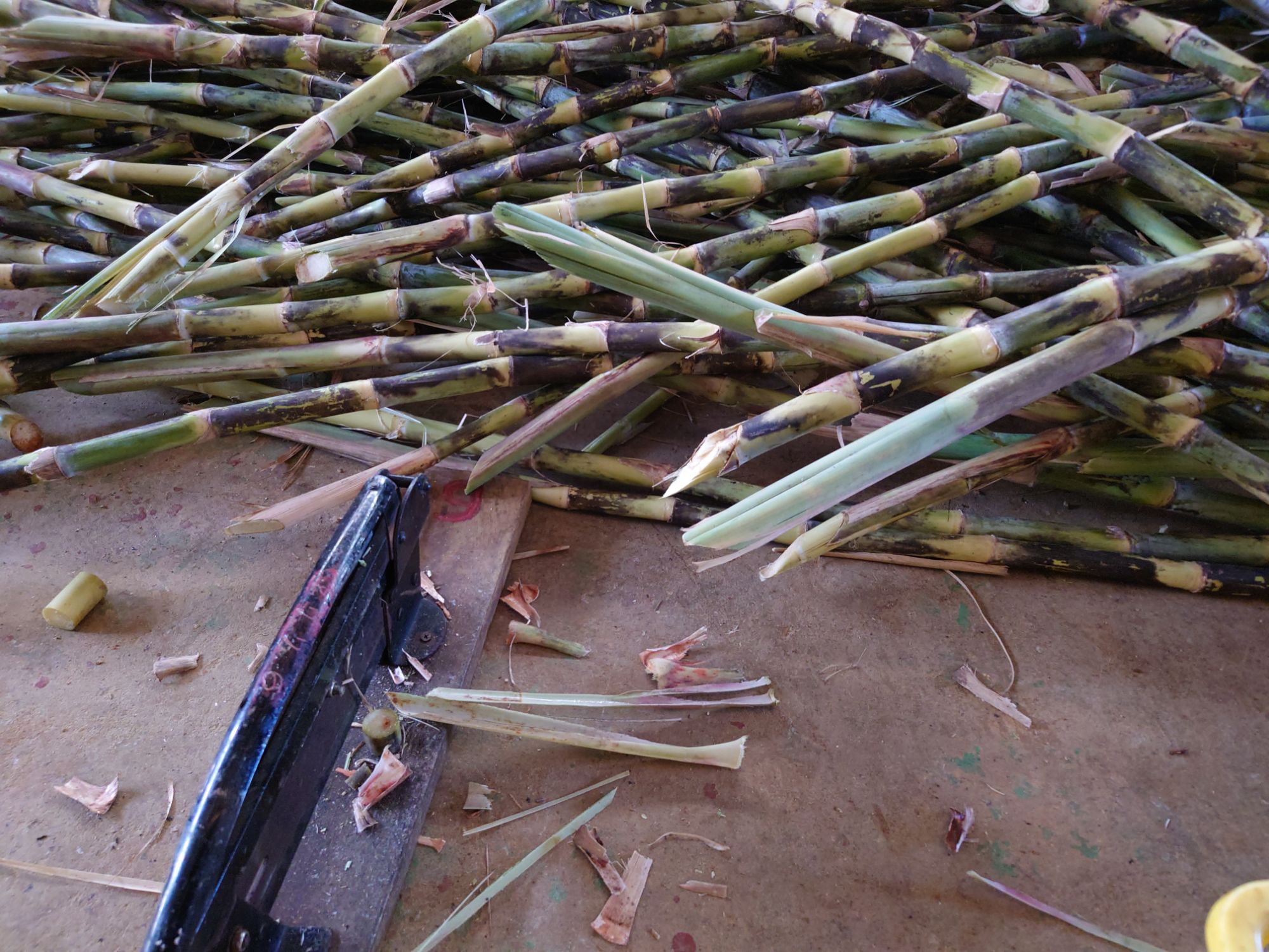 午後の作業は補植用のサトウキビを作ると、補植する場所の目印をつけるです。