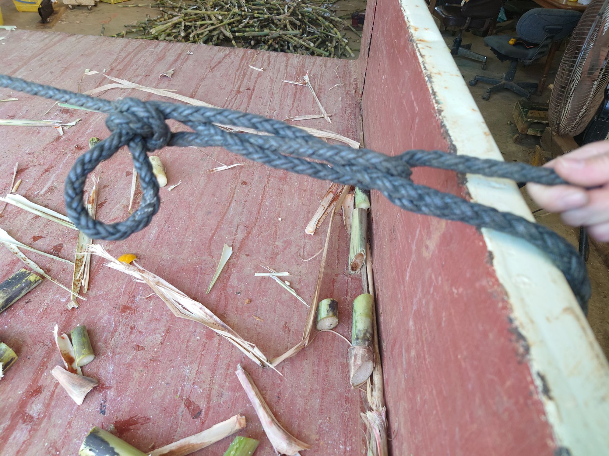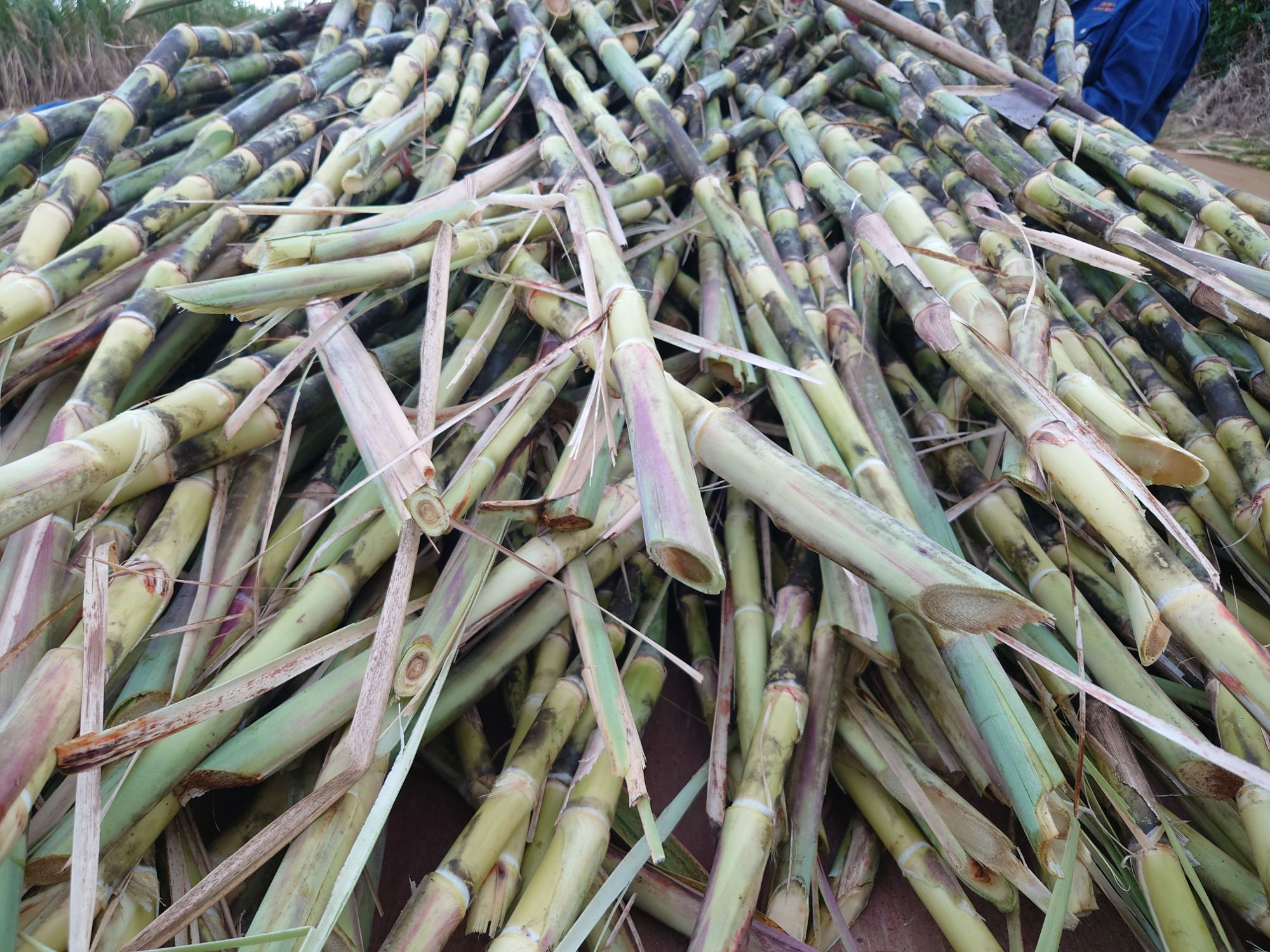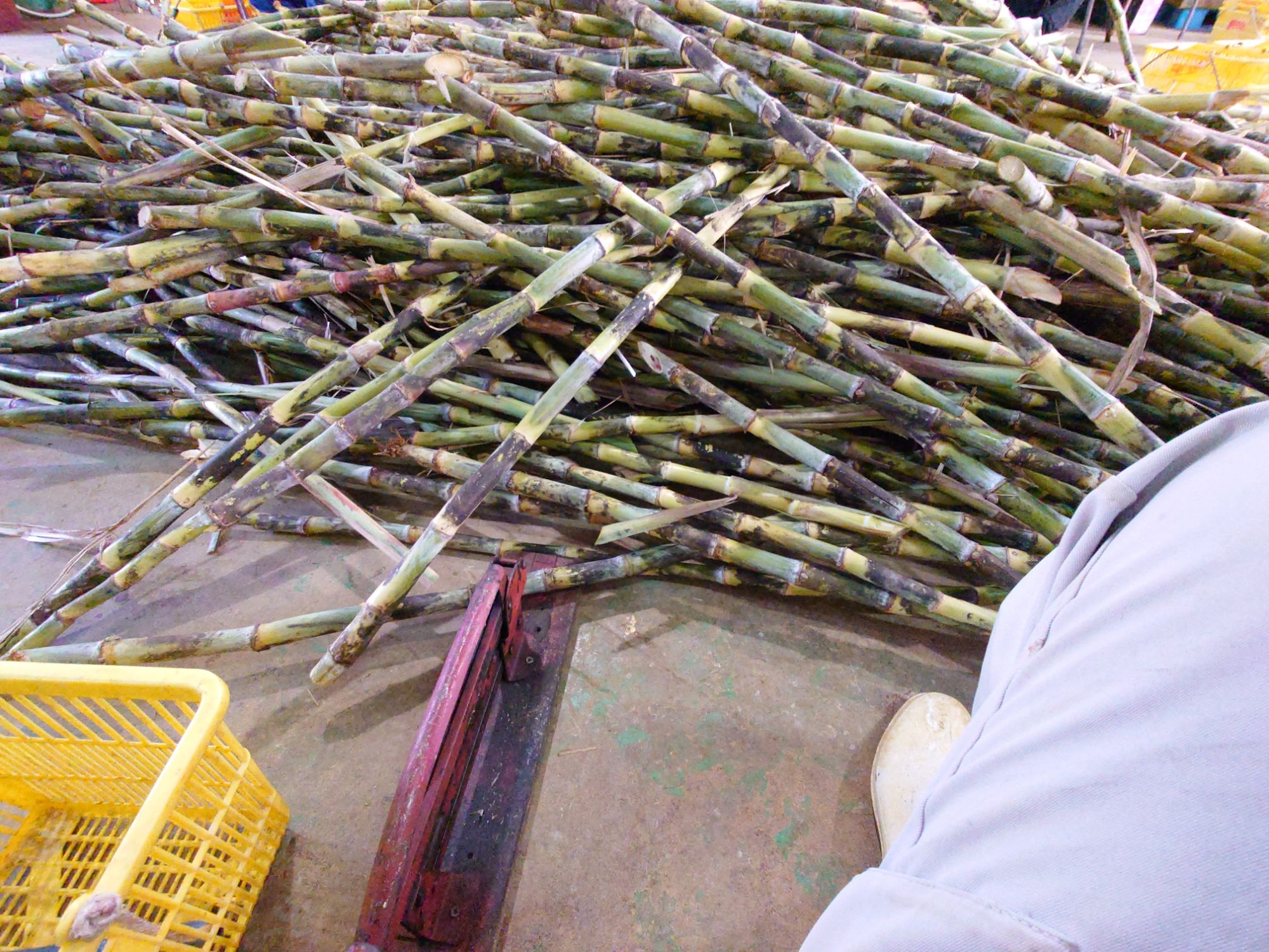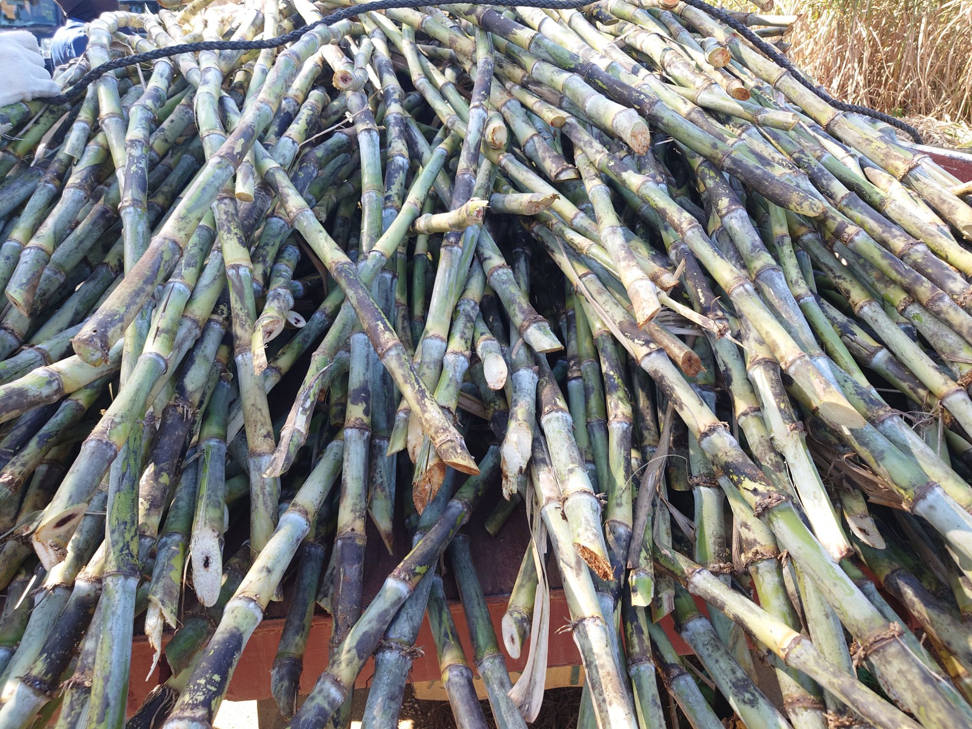 載せ方が逆だったようで、サトウキビが硬い地面側の方を後ろ側に向けて載せるらしいです。