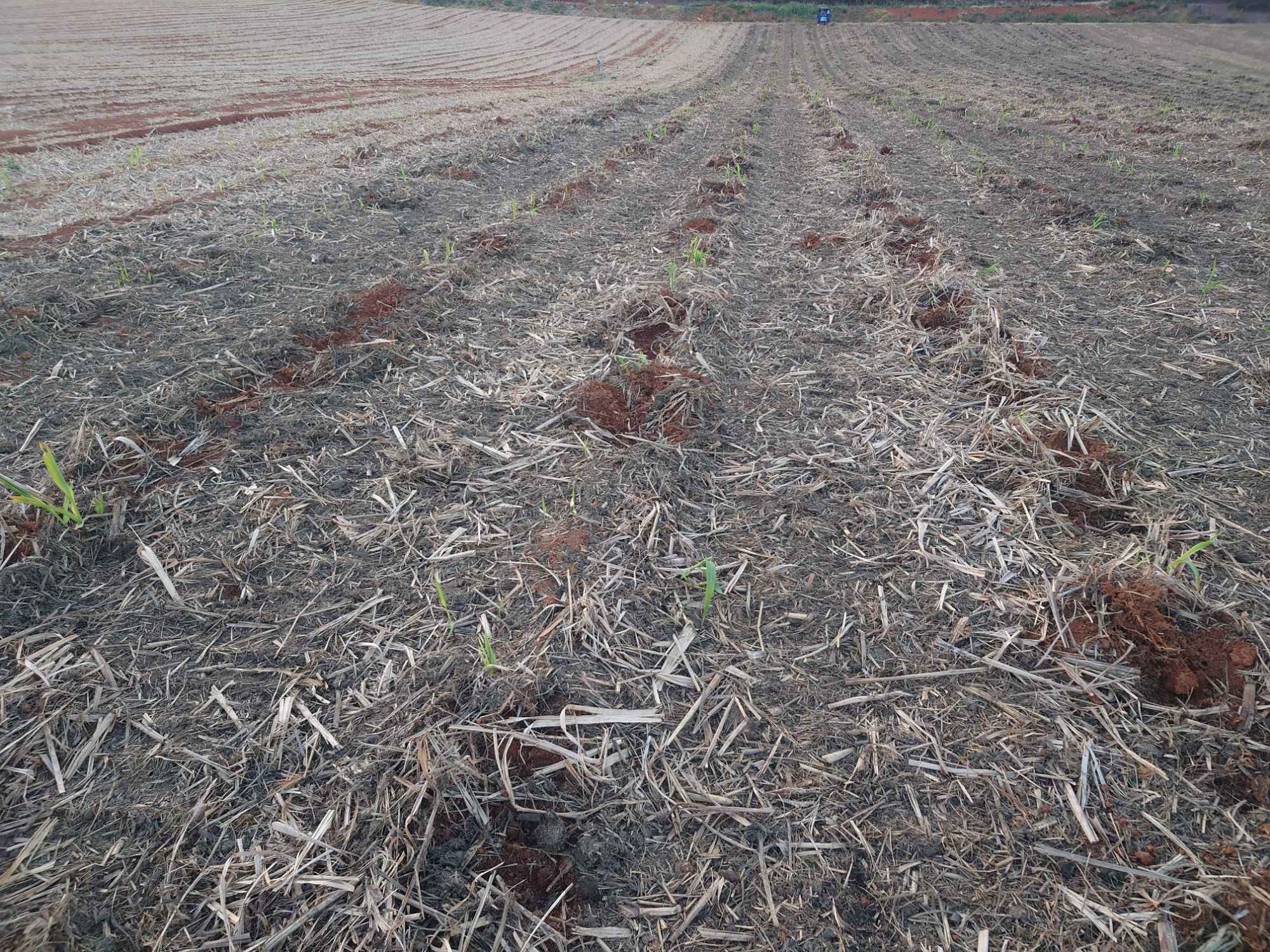 この畑にサトウキビの補植です。