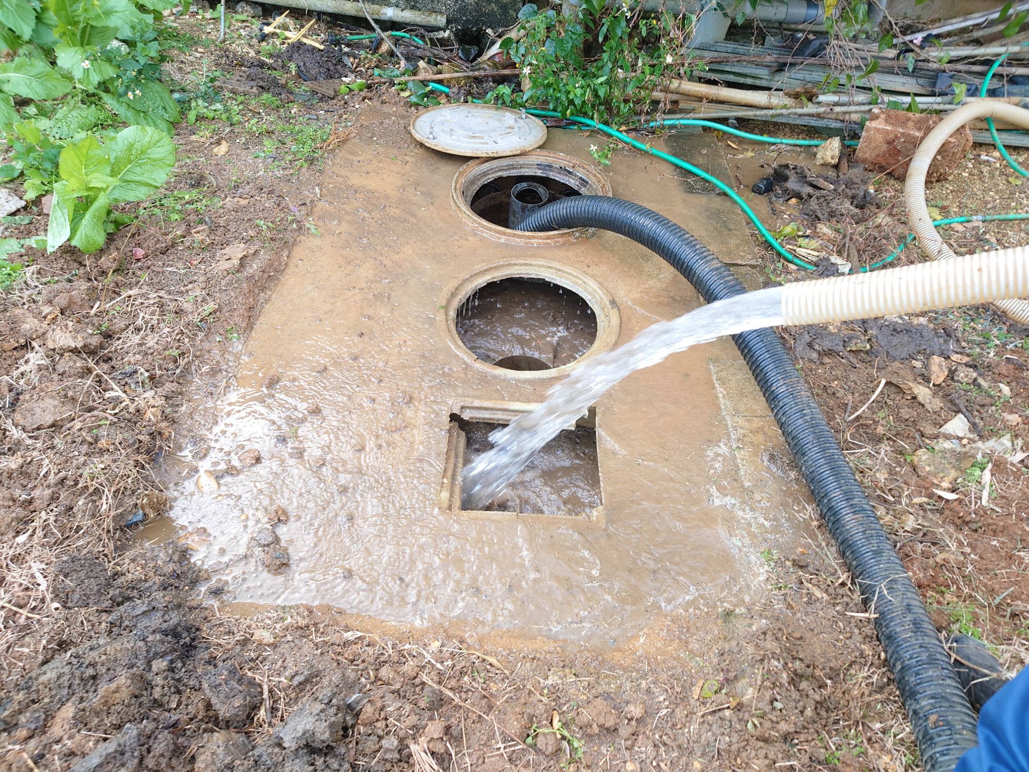 バキュームで吸ったのを排水です。