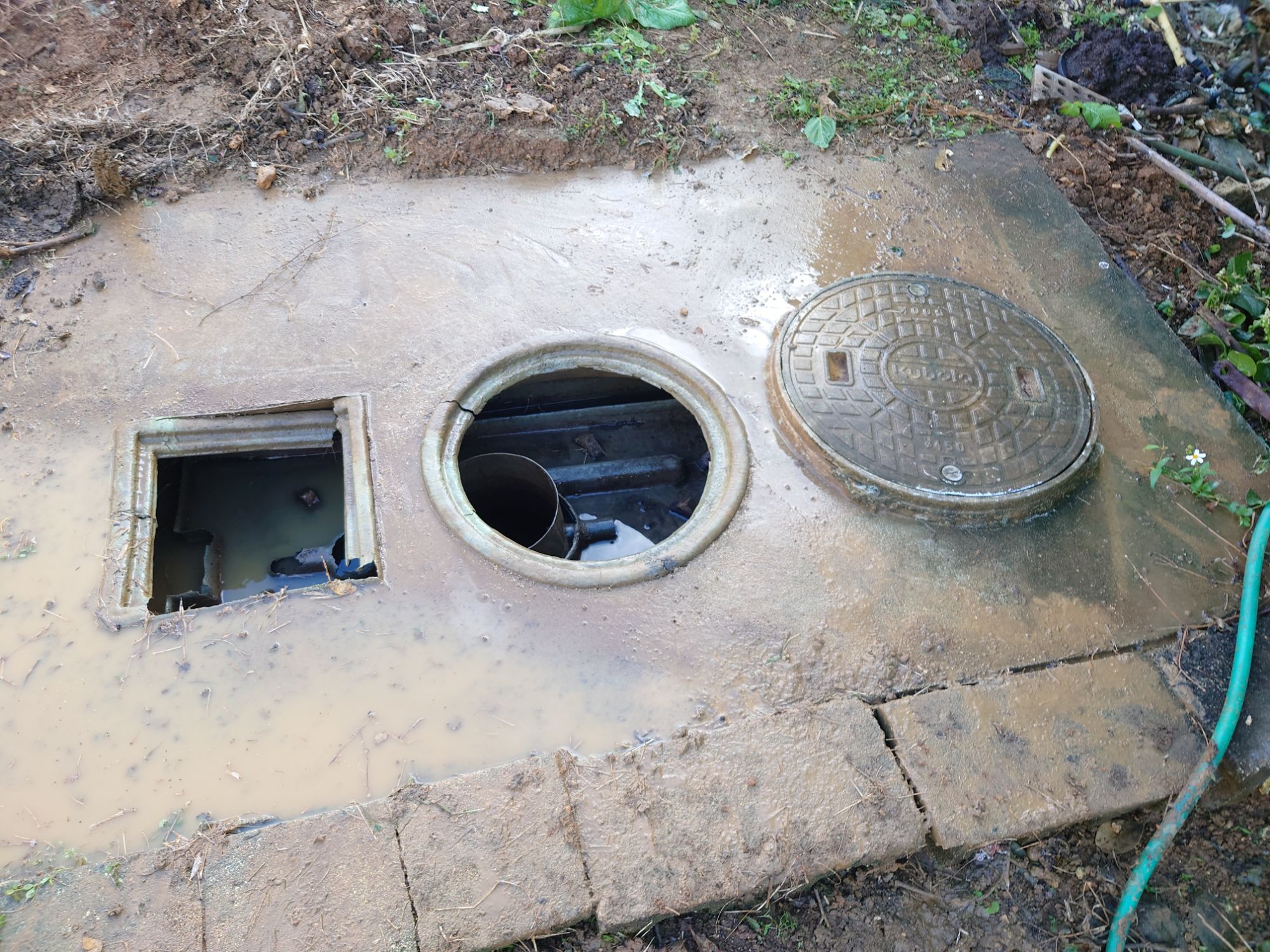 午前の作業は畑と排水溝の掃除と、洗カン水捨てです。