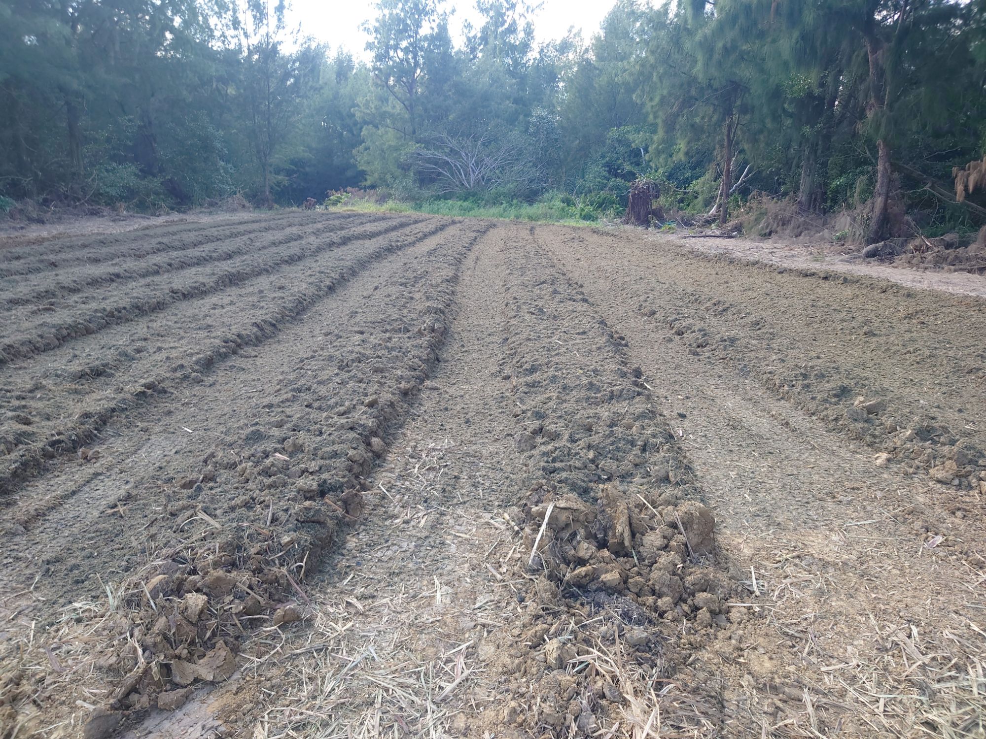 バックで畑に入って、前進でバガスを撒いていくという畑がありました。
