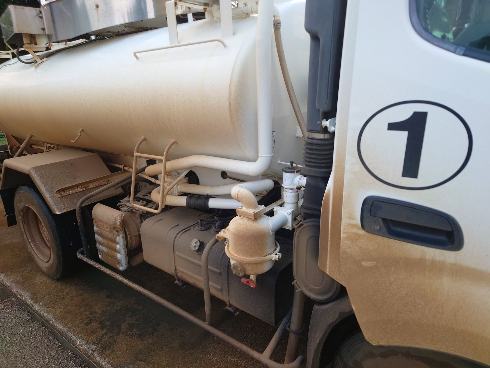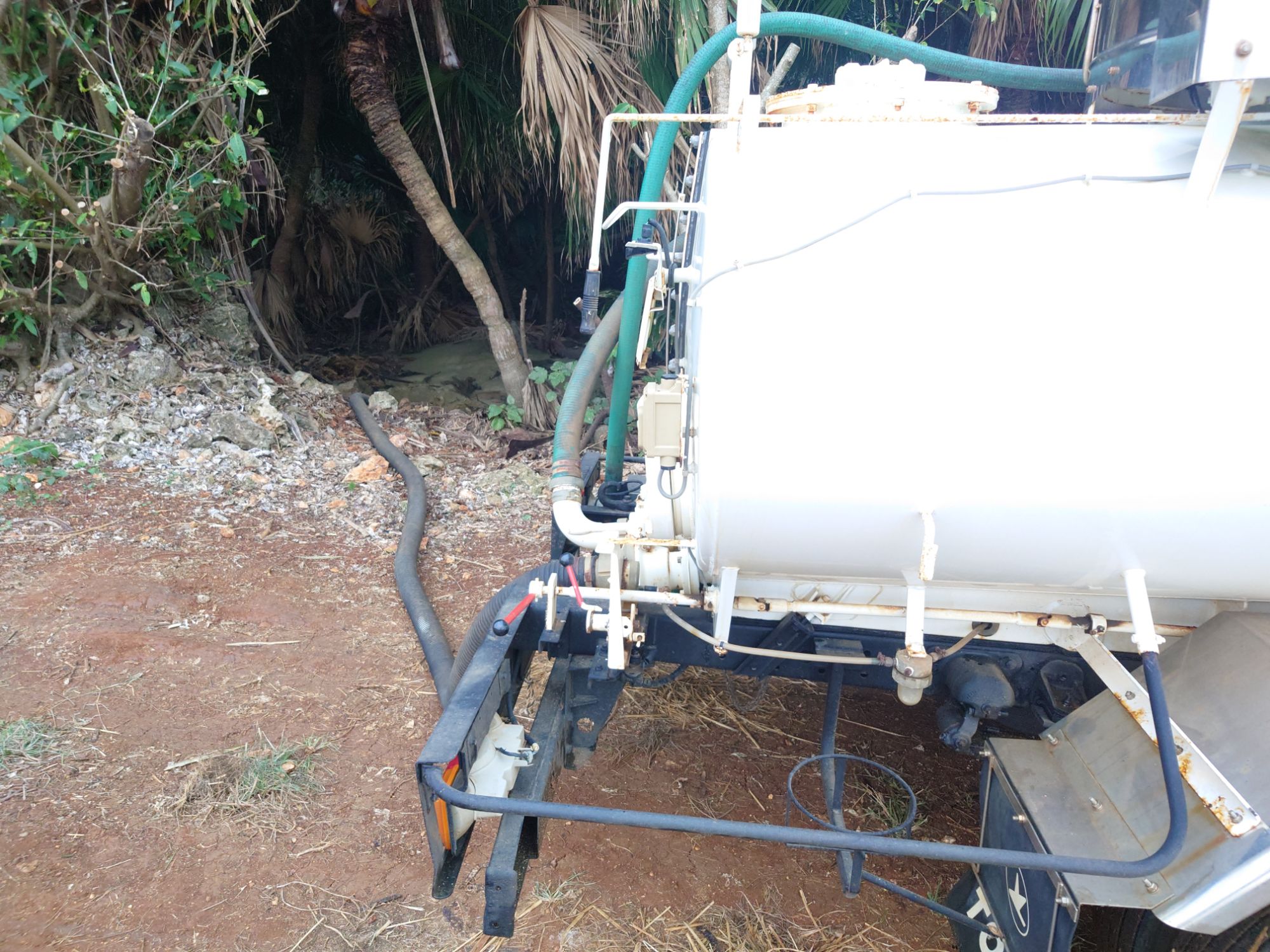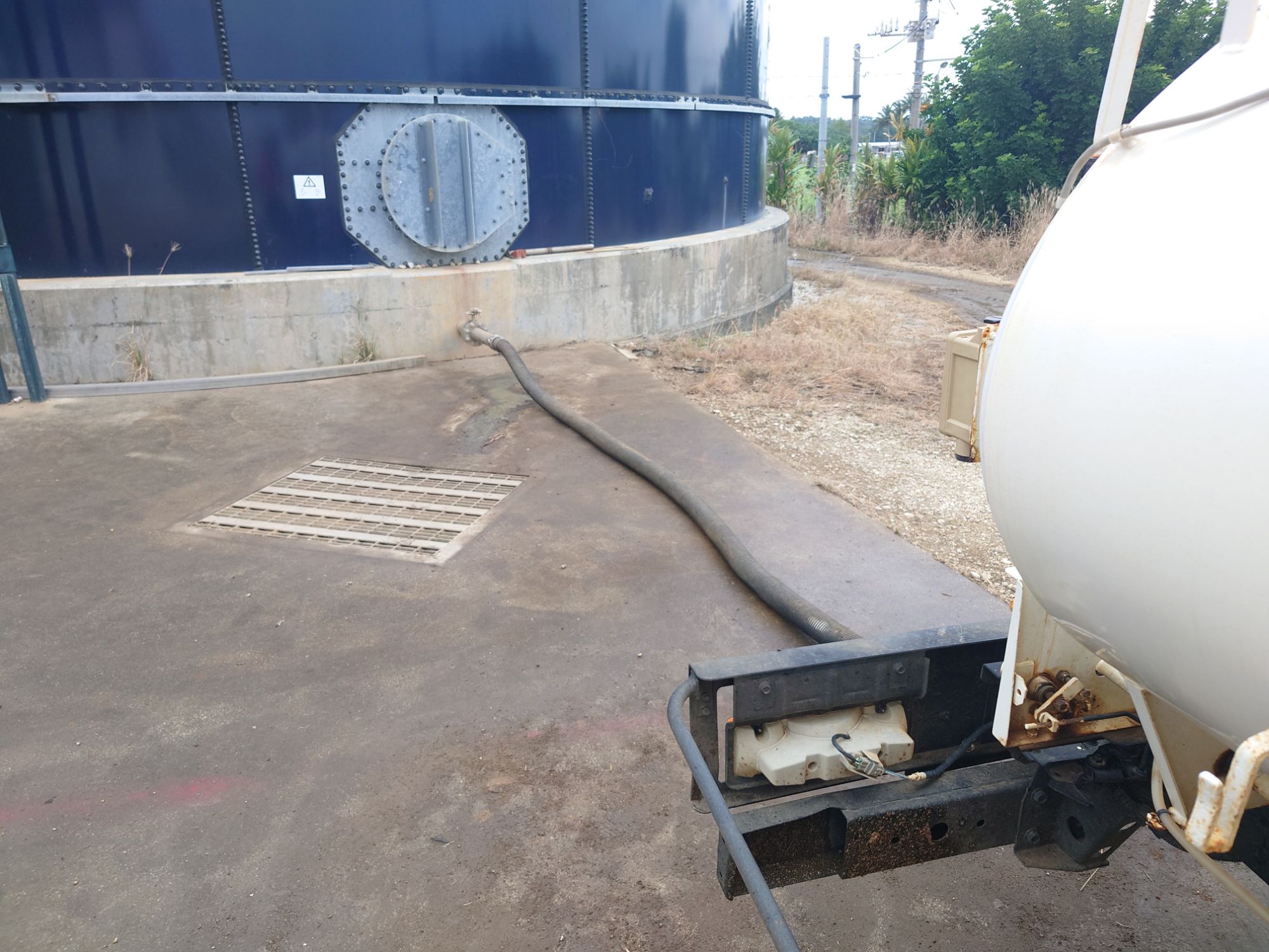 大型車1台、デカイタンクを荷台に載せている中型車3台、バキュームカー1台の計5台で8時間くらい稼働して、結構減りました。