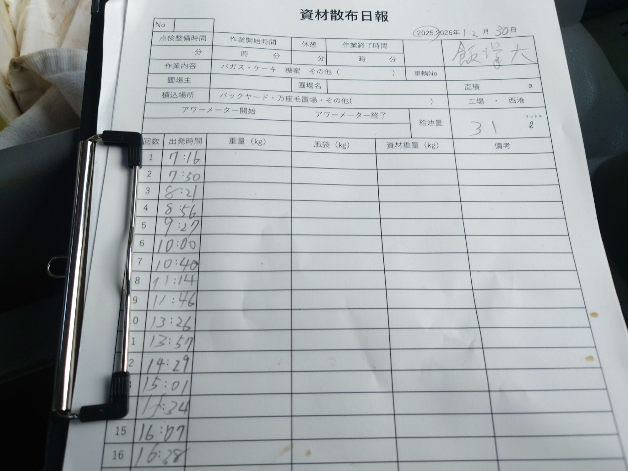 燃料は軽油で、燃料車が駐車場に置かれているので、PTOを入れて自分で入れていきました。