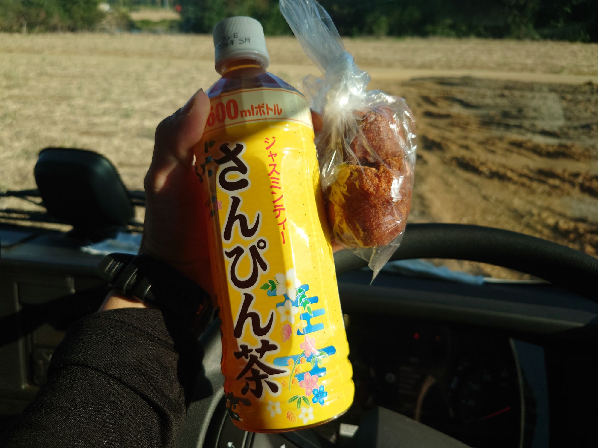 畑を移動して、バックヤード班のリーダーと園主さんに畑の場所を聞きに行ったら、サーダーアンダギーとお茶をいただきました。