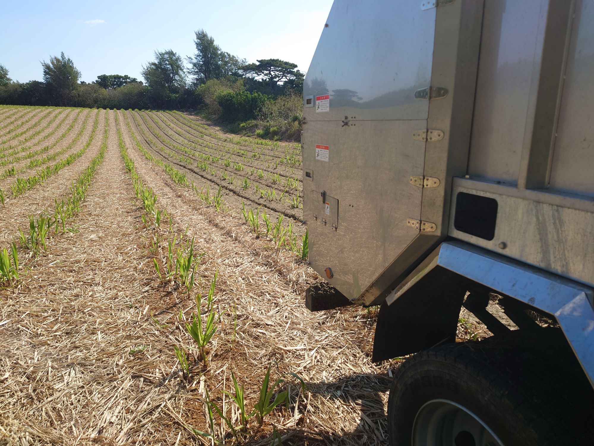 徹底的に真っすぐに入ると、真っすぐに進むやり方と、バガスを撒くときの距離のデータを取っている最中という感じです。